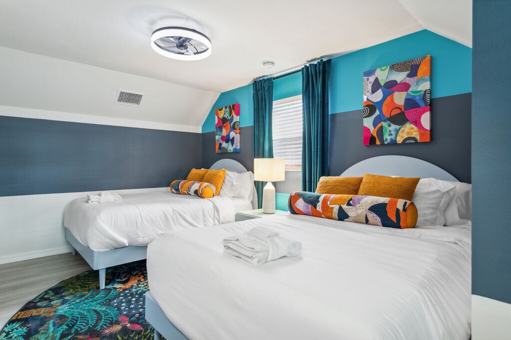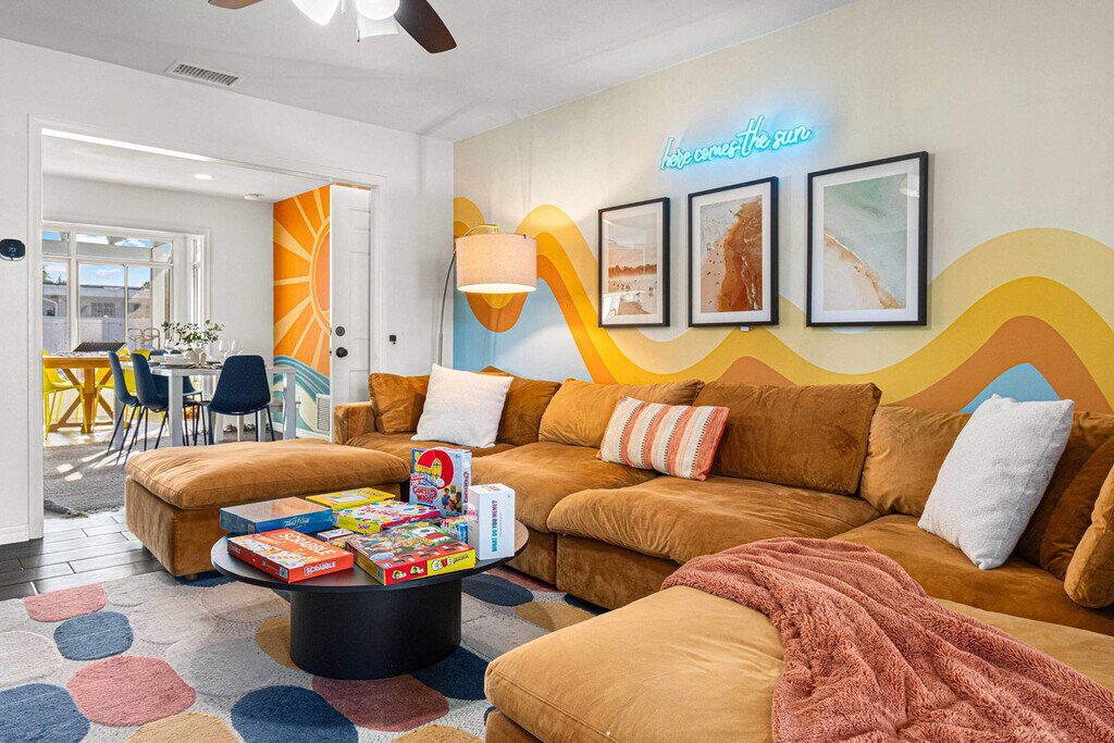 Looking for a sunny escape to Florida or a relaxing staycation? Feel at home in this tropical, boho, and cozy escape. This intimate space will provide you with the perfect vacation! This home features 5 spacious bedrooms with fun and unique designs, 3 modern bathrooms, and a billiard lounge/sun-room. The beautiful chef's kitchen is equipped with modern appliances and design. There is an indoor and outdoor dining area, a huge backyard game paradise with bowling, a fire pit, and more. Enjoy the outdoor pool loungers and games, a putting green (mini golf), a fire pit area, and a grill. The private multi-sports court is also available for your enjoyment. If you would like to add pool heating to your reservation, please let us know in advance, and we can coordinate the set-up for you. The cost for this amenity is $50 per day of stay. We welcome furry friends with a written notification from the guest and approval by the host. We allow one house-trained dog (please specify breed and weight) and a pet fee is applied. This home is located in a quiet, residential neighborhood with wide sidewalks ideal for running and walking. It is only 19 km from John's Pass and Johns Pass Village and Boardwalk, 24 km from the Chihuly Collection, 25 km from Tropicana Field and St. Pete Pier, 10 minutes from beautiful beach access, 8 minutes from Seminole City Center, 20 minutes from Clearwater, and 30 minutes from Tampa. The nearest airport is St. Petersburg-Clearwater International Airport, 7 km from the property. The property is right on a busy street and can be noisy at times. Quiet hours are between 10 pm and 9 am. There is absolutely no smoking and no drugs allowed inside the home or elsewhere on the property. Only the number of guests indicated on the reservation are allowed to stay overnight on-premise, unless otherwise agreed upon in written form. We can accommodate a maximum of 10 guests at any given time. We reserve the right to terminate a reservation without refund, and/or pursue monetary fines if guests are found to be in violation of any of these rules. [SI]