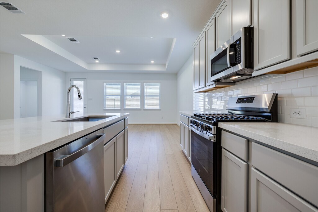 Experience the charm of this 1-story home with 4 bedrooms,2 bathrooms,a 2-car garage,open-concept living space. The foyer leads to 2 bedrooms and 1 bathroom,while the primary suite boasts a spa-like bathroom and walk-in closet. A flex room can be used as office space,laundry room,and garage entry complete the layout. The great room flows into a dining area,kitchen with an island,and a covered patio. Enjoy the convenience of included appliances like a Refrigerator,Washer,and Dryer. Don't miss out on this opportunity to call this beautiful property home. MLS# 10251932