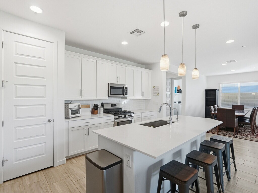 Discover modern living in this stunning 4-bedroom, 3-bathroom home nestled in the thriving Cadence at Gateway community in Mesa! With a bright, open-concept layout, gourmet kitchen with sleek white cabinetry, stainless steel appliances, and a luxurious primary suite featuring a walk-in closet, this home is designed for comfort and style. Enjoy a grass yard and covered patio perfect for relaxing or entertaining. Resident will have access to all Cadence Community amenities including a pool, fitness center, parks, and trails, all just steps away. Conveniently located near the Loop 24 freeway, this neighborhood offers easy access to shopping, dining, and more—making it the ideal place to call home.