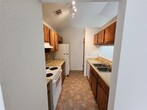 UPDATES LAST YEAR: THE POPCORN CEILING HAS BEEN REMOVED, ALL WALLS AND TRIM PAINTED, AND A NEW LIGHT FIXTURE IN THE KITCHEN. Spacious two-bedroom, two-bath unit. All concrete and hard tile, NO CARPET. The primary bedroom has a large closet. both are good-sized bedrooms. Single car garage with storage nook, washer/dryer hookups in garage. Roomy fenced backyard. Close to schools, restaurants, grocery stores, and transportation. Pets allowed, two pets maximum with size and breed limits. Very close to Guerrero Thompson Elementary School.