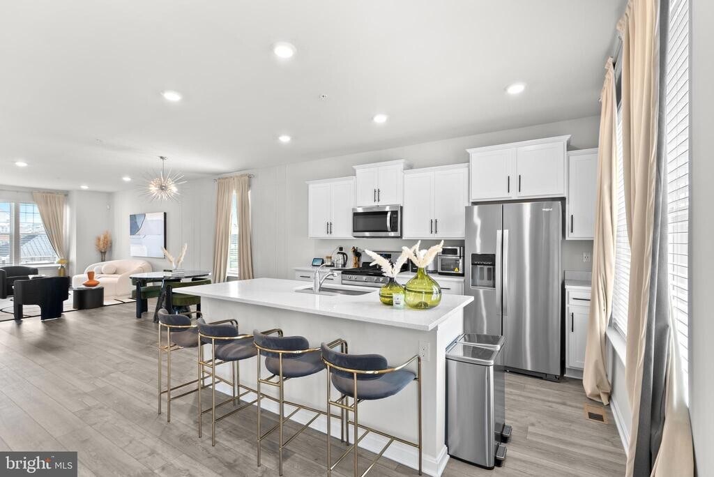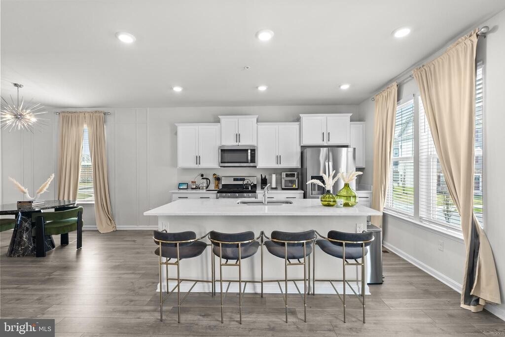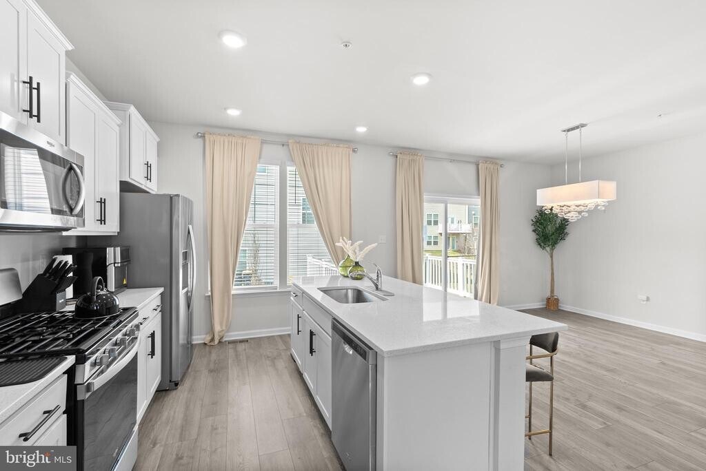 Welcome to this beautifully maintained end-unit townhome in Woodmore Overlook, offering a perfect blend of comfort, style, and convenience. This spacious 2,471 square foot home features 3 bedrooms, 3.5 bathrooms, a 12x10 deck, and a two-car garage. Enjoy a well-maintained yard with a sprinkler system, along with access to community amenities including a gazebo and playground—perfect for relaxing or spending time outdoors. The main level showcases an open-concept layout ideal for everyday living and entertaining, complete with stainless steel appliances, a 5-burner gas range, white cabinetry, granite countertops, and hard surface flooring throughout. Upstairs, the primary suite offers a large walk-in closet and a luxurious en-suite bath with a spacious shower and quartz countertops. Two additional bedrooms, a full hall bath, and a conveniently located laundry area complete the upper level. The finished lower-level recreation room, with a full bath, provides additional flexible living space—perfect for a home office, gym, media room, or extra living space. This home also includes smart home features such as keyless entry, a video doorbell, and a programmable thermostat for modern convenience. Located just minutes from Woodmore Town Center, Costco, Aldi, Royal Farms, Wegmans, and so much more!