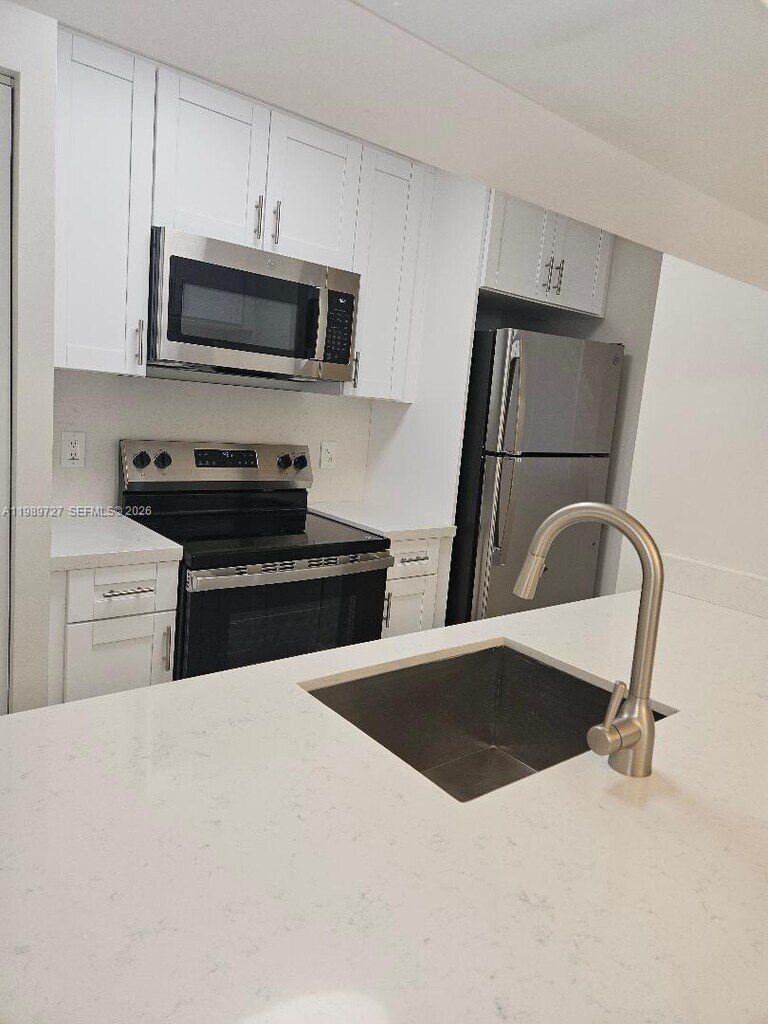Totally remodeled 3-bedroom 2-bathroom 2nd story condo in the Hammocks. Huge Bedrooms. Large Living Room/Dining Room. Gorgeous kitchen, quartz countertop, stainless steel appliances, beautiful bathrooms, Tile floor throughout the entire unit, a full-size washer and dryer, and a balcony. Building is recently painted, community has a pool, and there's a reserved parking space. Lots of visitor parking, close to Publix, CVS, small restaurants, and schools. Easy to show. MLS # A11989727