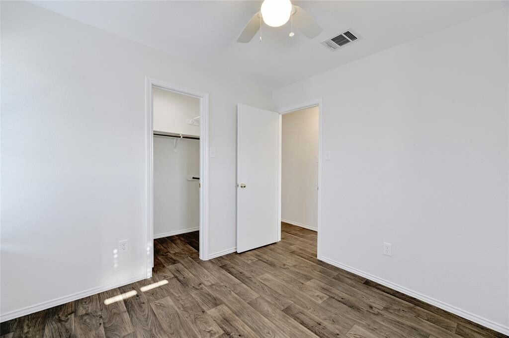 Updated, clean, freshly painted and ready for move-in home with 3 bedrooms, 2.5 bathrooms with approximately 1,200 sf of living space. Find an open living room, dining room and kitchen space on the first floor with a half bath too. Newer vinyl flooring throughout, large private fenced backyard with a covered porch and attached garage with an auto opener. Find a remodeled kitchen with refrigerator, microwave, dishwasher and disposal included. Ceiling fans in each room and walk in closets in every bedroom with a large storage area under the stairs in the living room. Contemporary window coverings inside and sun screens outside. Newer Train A/C & heat system which is maintenanced regularly. Home located on a spacious cul-de-sac. Standard sized business trucks and vans with company logos are able to park at this property without a problem, as there is no HOA. Close to parks, schools, public transit bus stops, restaurants, grocery stores, movie theaters & coffee shops. Community pool & tennis/pickle ball courts available to use for a fee. Easy commute access to Mopac, Hwy 35 & 290, 45, 1626 & appropriately 15 minutes to downtown Austin. Prospective tenants must make or show income of at least 3 times monthly gross income to monthly rent and have a good prior rental history.