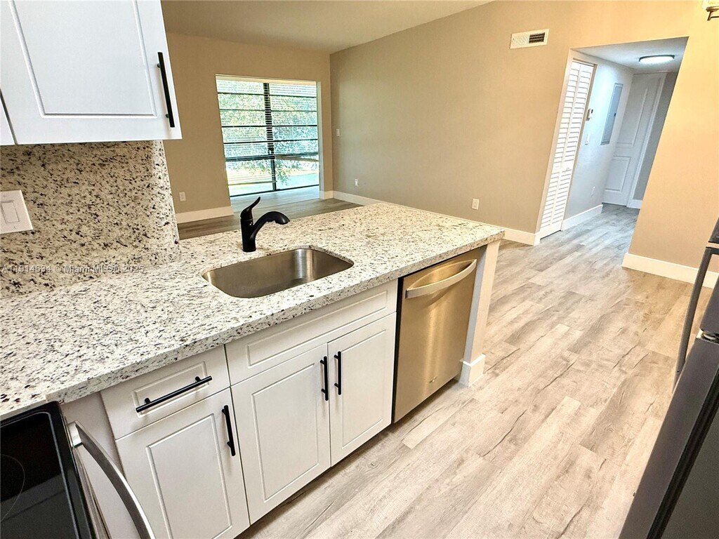 Beautifully updated 2-bedroom, 2-bath condo in The Hammocks with an amazing lake view! This move-in-ready home features brand-new laminate wood floors throughout, a fully remodeled kitchen with modern cabinetry and finishes, updated bathrooms, and fresh interior paint. The bright and open layout offers plenty of natural light and a peaceful balcony overlooking the water, perfect for relaxing at any time of day. Enjoy assigned parking plus plenty of guest spaces. The community offers a swimming pool, gym, barbecue areas, and access to all Hammocks amenities, including walking trails, clubhouse, lakes, and more. Conveniently located near shopping, dining, great schools, and major roadways. A perfect blend of comfort, style, and location!