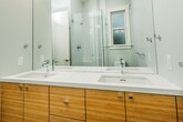 This welcoming 2-bedroom, 2-bath home has a thoughtfully designed layout that blends comfort with convenience. The open concept living and dining area is centered around a cozy gas fireplace with an easy-to-use switch, complemented by an overhead ceiling fan for year-round comfort. Sliding doors open to a beautifully landscaped shared garden patio featuring a lemon tree, tropical palms, and a BBQ areaperfect for relaxing or entertaining. The kitchen is a true highlight, featuring premium appliances including a Fisher & Paykel fridge with freezer drawer, Bertazzoni gas range paired with Bosch microwave above, Bosch dishwasher, garbage disposal, and custom cabinetry that adds both function and flair. The primary bedroom suite features an ensuite bath with a dual-sink vanity and a spacious stall shower, while the second bedroom is ideal for guests or a home office. Thoughtful storage solutions include bedroom closets organizers, linen closet, and a storage closet in the guest bathroom. In-unit LG washer and dryer are discreetly housed in a hall closet. A dedicated garage space with access from the back adds further convenience. Additional features include double-paned windows, hard-wired HDMI for TV, cable/internet readiness, and water and garbage utilities are included. Rental Terms: Annual: $5,800 Per Month