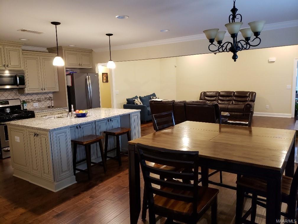 GREAT HOME IN THE RIDGE AT PRATT FARMS AVAILABLE JULY 7, 2026! This 4 bedroom 2 bath home is a one story open floor plan that begins with a refined foyer entry way, which opens into a roomy living area with vaulted, coffered ceiling. The kitchen opens to the family room with a large center island and adjoining dining room. The kitchen has built-in stainless steel appliances, granite counter tops and an expanded pantry. The separate master quarters provides a large bedroom and walk-in closet as well as luxurious bathroom complete with double granite vanity, garden tub and tiled shower with glass door. The back yard is large, which is great for entertaining and has a covered patio. AVAILABLE JULY 7, 2026!