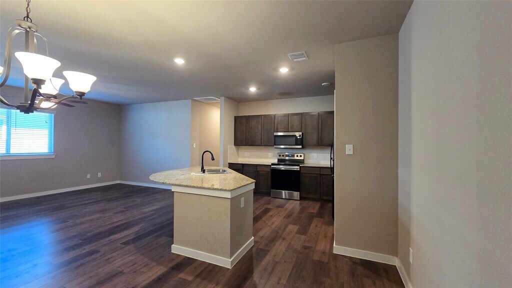 Welcome Home. This home features a popular open floor plan with upgraded features such as granite countertops,breakfast bar,stainless steel appliances with island in the kitchen. Tile backsplash,brushed nickel fixtures. High ceilings with ceiling fans and plank tiling with wood grain on the floors. Double sinks in the master with a shower and walk-in closet. Sit outside on the covered patio overlooking a fenced back yard. HOA maintains the front lawn only. Shopping,entertainment,restaurants close by. Ready for Immediate Move-in! MLS# 2429483