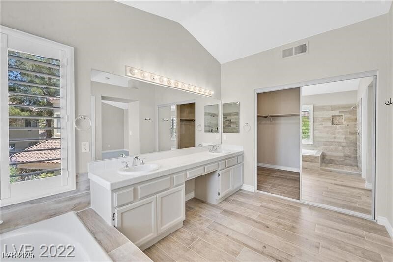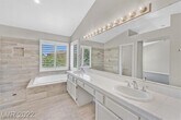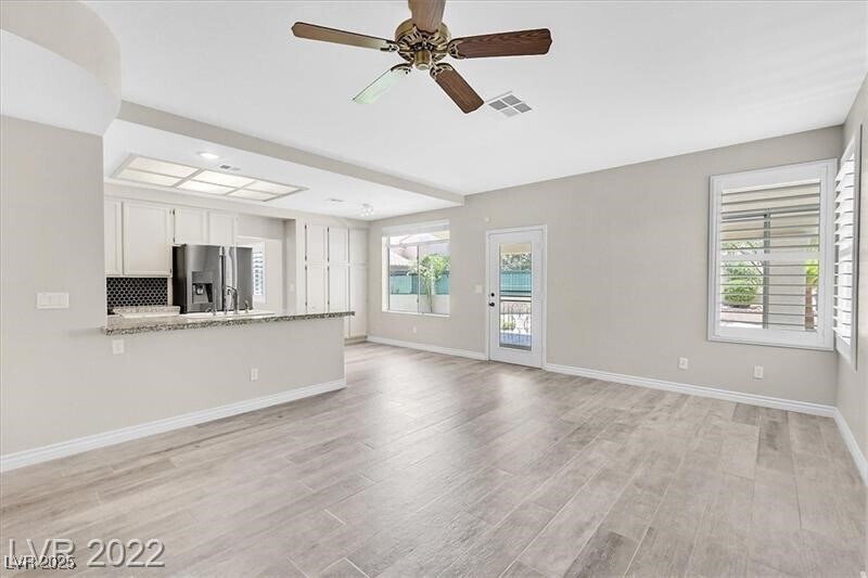Immaculate, over 2100 sq ft home in Peccole Ranch! Situated in the gated development of Ascot Park. Spectacular curb appeal! Spacious bedrooms with bedroom/den downstairs. Hard to find 3 car garage with storage. Modern tile flooring on the first floor and staircase. Open and high vaulted ceiling in living room and dining room! Beautiful front and rear landscaping with large covered patio. Shutters and ceiling fans throughout the home! Primary bedroom has vaulted ceilings! Primary bath is updated with tiled floors, tiled shower and bath! So many more! MOVE-IN READY! See this one today!