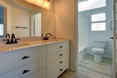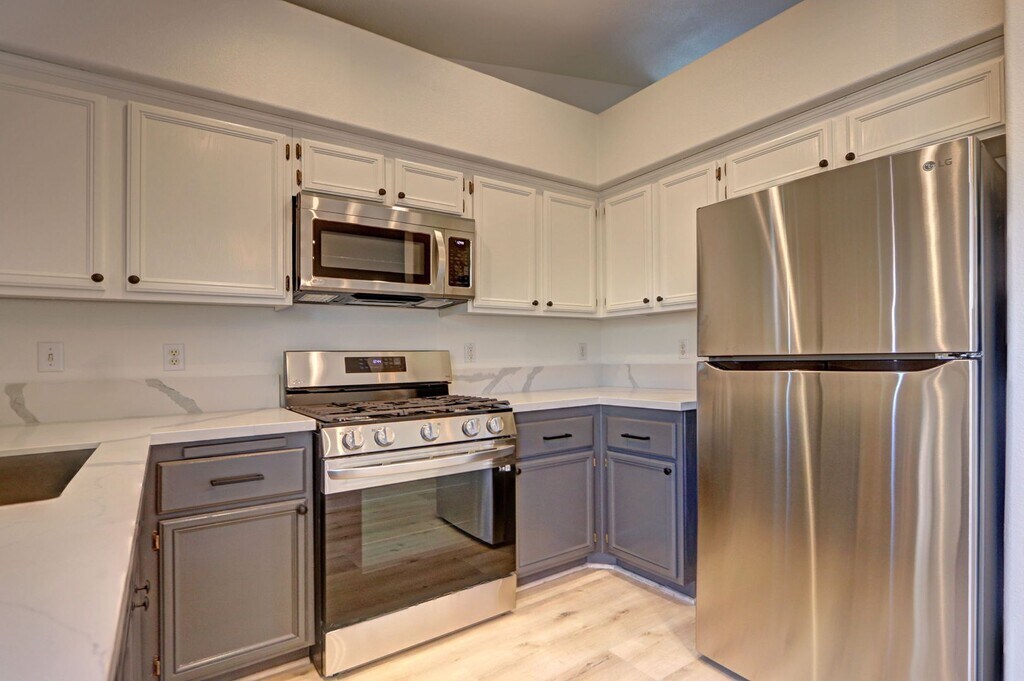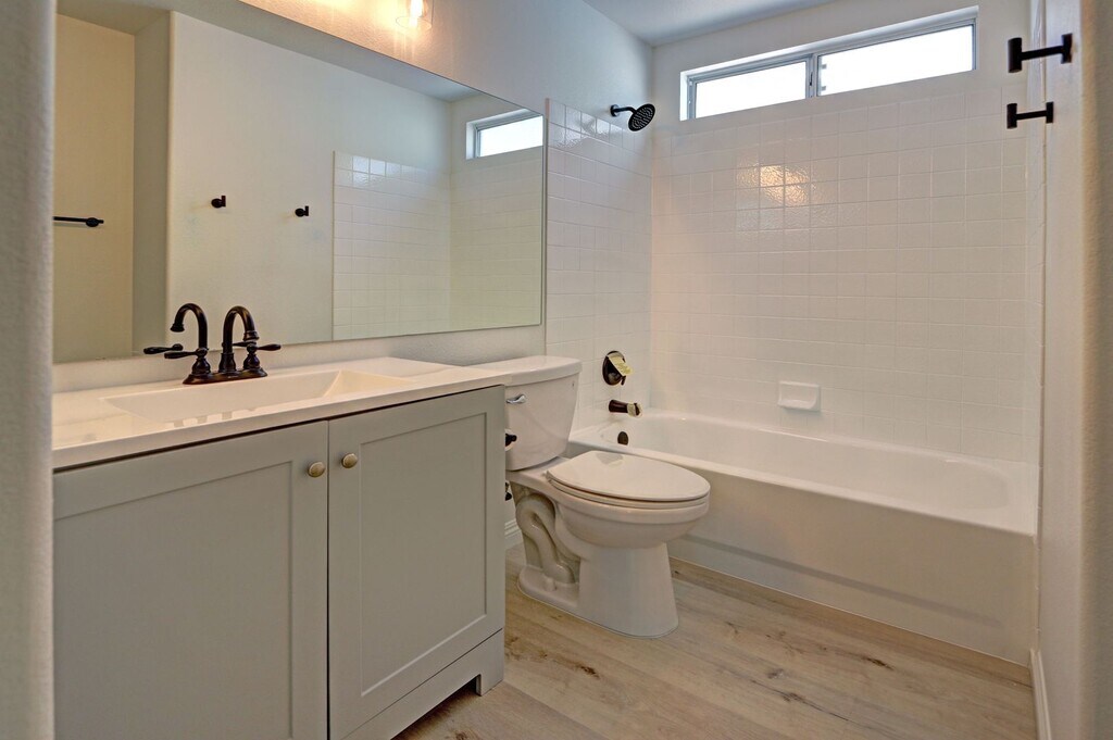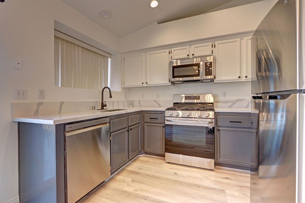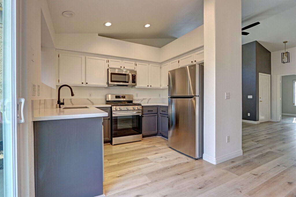 COMPLETELY UPGRADED/RENOVATED/REMODELED single-story home in desirable SUMMERLIN! Features NEW luxury vinyl flooring & NEW baseboards throughout with freshly painted three-tone interior. Kitchen showcases NEW, sleek QUARTZ Countertop & custom backsplash; NEW stainless steel sink, faucet and garbage disposal; NEW recessed lighting; freshly painted two-toned cabinets adorned with contrasting hardware. The entrance way welcomes you into a bright, remodeled living room; the spacious floor plan is perfect for entertaining guests or a cozy night in. NEW ceiling fan & UPGRADED energy efficient light fixtures compliment the modern flare. Both bathrooms have newly refinished tub and shower walls accented with NEW bathroom fixtures and hardware; NEW toilets; and NEW vanities. 3 Linen closet offers ample storage space. NEW double-paned sliding glass door opens up to a tranquil backyard. Conveniently located minutes from shops, restaurants, parks, schools, golf course & Downtown Summerlin. **Tenant to pay additional $45.00 sewer/trash per month** *If application approved with pets, additional deposit required*
