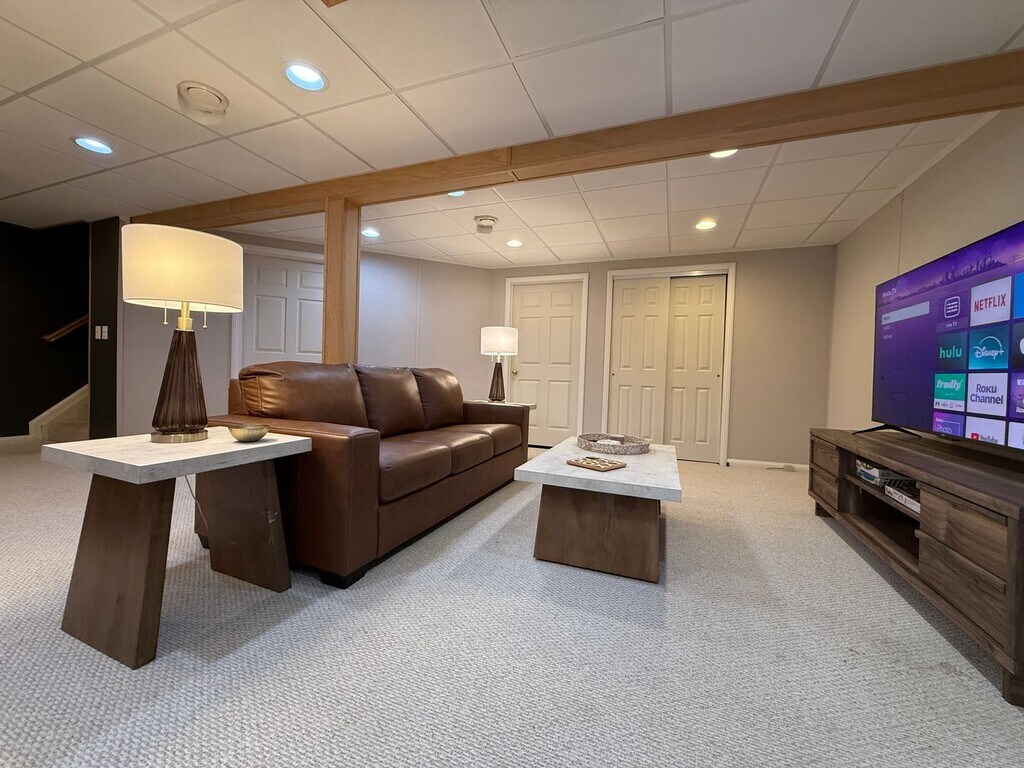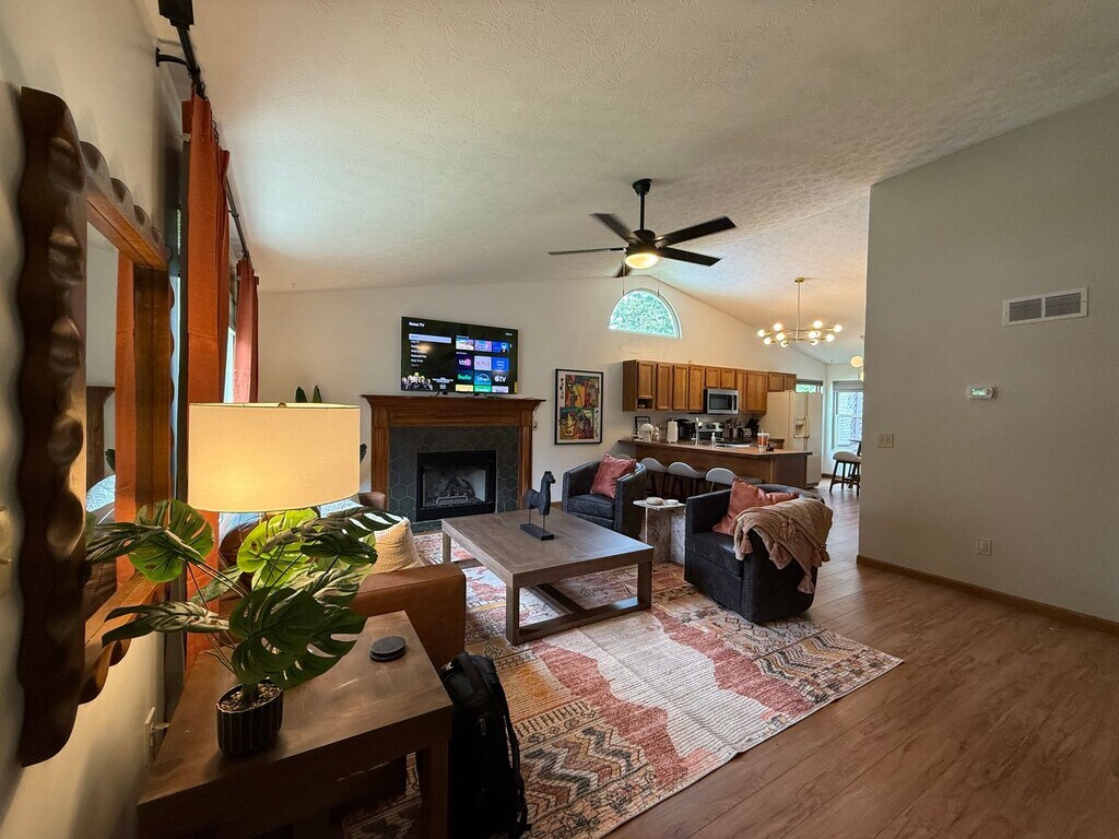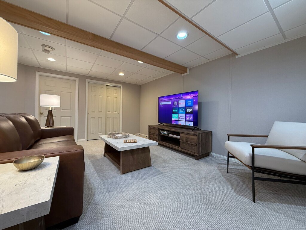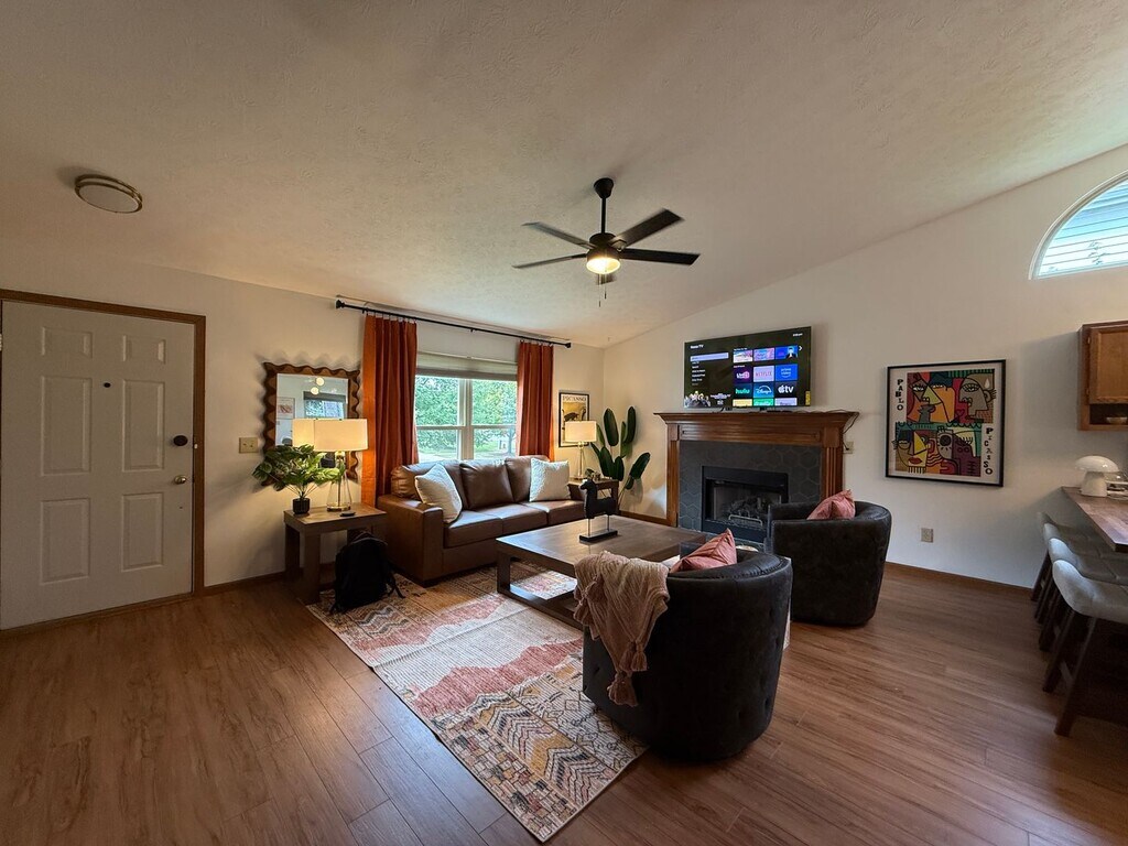 Fully Furnished. Fully Stocked. Fully covered. All utilities and high speed internet included. Whether it is work or play that brings you to West Chester, Ohio; this brand-new home has everything you need. It's quiet, comfortable, and not too far from Hamilton's own Spooky Nook. Centrally located between Cincinnati and Dayton, our home provides scenic wooded valley views. Along with the view it has a relaxing covered porch. Modern farmhouse design and TV's in every room. We provide everything you need. This home is meticulously decorated and we know you will love it! Come see us! A blend of comfort, style, and convenience greets you as soon as you enter our ranch home. While decorating this inviting retreat, we have worked hard to create a home away from home feeling for our guests. The open-concept floor plan in the living space allows room for many guests. Everyone in your group will have room to mingle and relax. The living area is the home's heartbeat, successfully combining the relaxing living room with an inviting dining area and a fully equipped kitchen. Large windows allow plenty of natural light to illuminate the space throughout the day. The hardwood flooring, and tasteful décor create a feeling of warmth and coziness. Three comfortable bedrooms are designed to offer all the rest you need after a long day of exploring the exciting city of Trenton. The home offers relaxation and comfort, and we can't wait for you to experience it for yourself. ? LIVING ROOMS ? The living room is a part of the contemporary open floor plan. See what the chef is up to, help them set the table, or unwind on the cozy sofa with a good book. There is also a second living room area downstairs that features a queen sized fold out couch, 65" TV and plenty of cozy bedding. ? Two Comfortable Leather Sofas ? Two 65 Inch Smart TV ? Coffee Tables ? Reading Lamps ? KITCHEN & DINING ? Even the most demanding chefs would enjoy preparing delicious meals using numerous state-of-the-art cooking appliances. In addition, spacious countertops provide plenty of workspaces for you to prepare delicious homemade delicacies. ? Microwave ? Stove ? Oven ? Toaster ? Refrigerator/Freezer ? Keurig Coffee Maker ? Dishwasher ? Sink - Hot & Cold Water ? Trays ? Glasses ? Silverware ? Pots & Pans Serve those delicious meals on the adjacent dining table and let the smell of freshly cooked homemade delicacies invite everyone over for a tasty feast. If you don't feel like cooking, you can always check out one of the many nearby restaurants in the area. ? Dining Table with Seating for 6 ? SLEEPING ARRANGEMENTS - 3 BEDROOMS ? Three tastefully furnished bedrooms are designed to provide hotel-like comfort and convenience needed to relax and rest so you can remain energized and do everything you have planned the next day. ? Master Bedroom: King-Size Bed, Ensuite Bathroom ? Bedroom 2: Queen-Size Bed ? Bedroom 3: Queen - Size Bed All bedrooms are equipped with a similar set of amenities. ? Premium Pillows, Linens, and Sheets ? Closets with Hangers and Shelves ? Dressers with Spacious Drawers ? Night Stands with Reading Lights ? 55-inch Smart TV in all bedrooms ? BATHROOMS ? As you already know, the master bedroom features an ensuite bath. Another full bathroom caters to the remaining two bedrooms and the living area. You don't have to worry about packing towels or essential toiletries, as we have already prepared these for you. ? Bathtub with a Shower ? Vanity ? Mirror ? Toilet ? Towels ? Hair Dryer ? Essential Toiletries Let us know if you have any questions regarding this beautiful home. We are more than happy to assist! We use the August Home application, which means there are no keys to lose! Simply, download the august home app and your key will be visible once your booking begins. When you arrive you may park in the large driveway. The entire home is exclusively yours without interruption during your stay, so relax, unwind, and make yourself at home. Other than the already mentioned amenities, the house also features: ? High-Speed Wi-Fi ? Central Air Conditioning ? Central Heating ? Washer/Dryer ? Iron/Board ? Free Parking ? Towels and Basic Consumable Toiletries ? ADDITIONAL ACCOMMODATION ? Traveling in a larger group, or your preferred dates are already taken? You'll be happy to know that we offer additional accommodation in the area. Please browse our host profile for the complete list of Homes. ? COVID-19 SANITIZATION ? The health, safety, and well-being of our guests are of utmost importance. For this reason, we use a thorough cleaning process after each check-out. ? NO SMOKING INSIDE ? Please refrain from smoking inside the home! Any smoking evidence will result in a fee for odor removal and furniture cleaning. ? NO PARTIES/EVENTS ? We kindly ask you to treat our home as your own to preserve its pristine condition for future guests and your return visits.