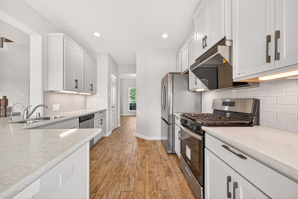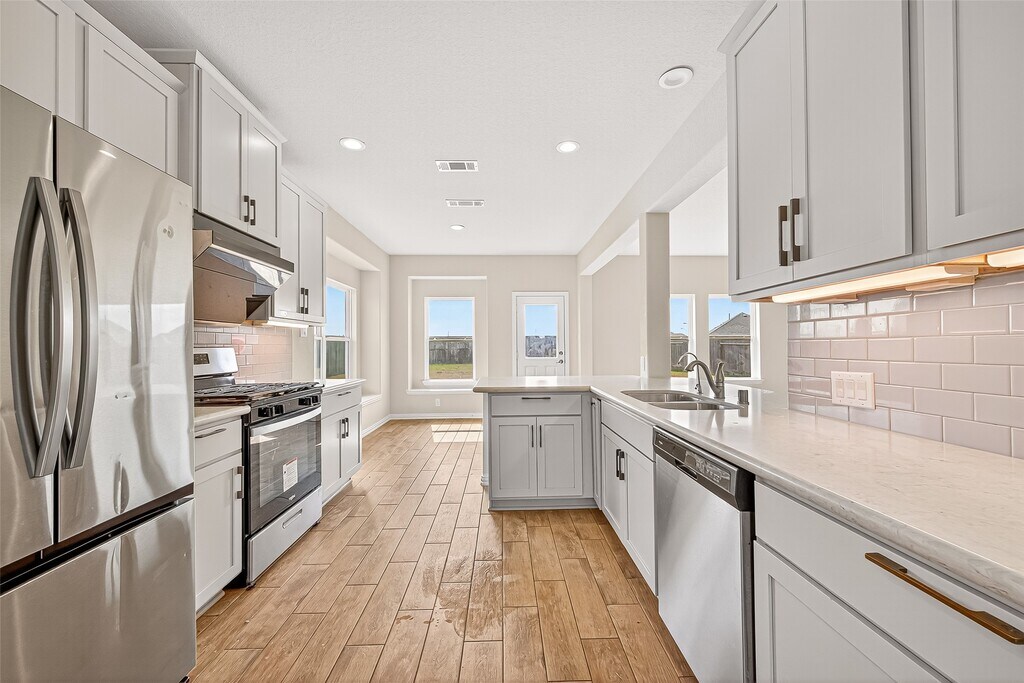Welcome home to this stunning 4-bedroom,2.5-bath residence with a 2-car garage,perfectly designed for comfort and modern living. The inviting open-concept layout features a spacious family room,elegant formal dining,a bright breakfast area,and a thoughtfully designed kitchen with abundant cabinetry,under-cabinet lighting,stainless steel appliances,and a convenient USB outlet. The primary suite is privately located on the first floor,while the second level offers a generous game room,three secondary bedrooms,and a full bath. Energy-efficient features include a 16 SEER HVAC system,Honeywell thermostat,PEX plumbing,radiant barrier,and Low-E tilt-in windows. Enjoy a vibrant community with scenic walking trails,an Olympic-size pool,splash pad,parks,and playgrounds. Ideally located near I-10 and Grand Parkway (99),and zoned to the highly regarded Lamar CISD. MLS# 42161921
