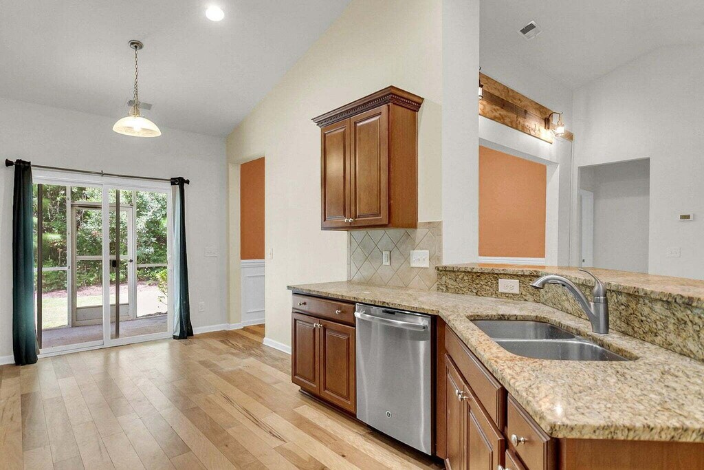 Welcome home to this beautiful 4-bedroom, 3-bathroom residence in the desirable Coosaw Preserve community of Ladson. This spacious home offers the perfect blend of comfort, style, and convenience, complete with a charming oversized front porch—ideal for relaxing mornings or evening unwinding. Inside, you’ll find an open-concept layout with a bright living room, dining area, and gourmet kitchen designed for both everyday living and entertaining. The living area features hardwood floors, a cathedral ceiling with a fan, and plenty of natural light. The kitchen is well-appointed with granite countertops, abundant cabinetry, tiled backsplash, gas cooktop, double wall ovens, a breakfast bar, and a built-in desk area. The main-level owner’s suite features hardwood floors, a tray ceiling, private access to the screened porch, and a spacious en-suite bathroom with dual vanities, a garden tub, tiled walk-in shower, and a custom walk-in closet. Two additional bedrooms and a full hall bath are also located on the main floor. Above the garage, a large fourth bedroom with a private bathroom provides flexible space for guests, a home office, or a private suite. Enjoy outdoor living year-round on the extended screened-in porch overlooking the backyard. Residents of Coosaw Preserve enjoy access to resort-style amenities including a pool, playground, and clubhouse. Conveniently located in the highly regarded Dorchester School District Two and just minutes from shopping and dining. Easy access to major employers including Boeing South Carolina and Joint Base Charleston, as well as the North Charleston Coliseum & Performing Arts Center.