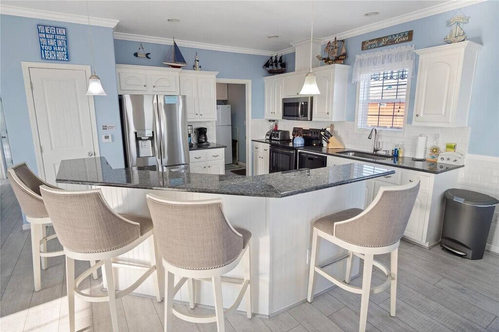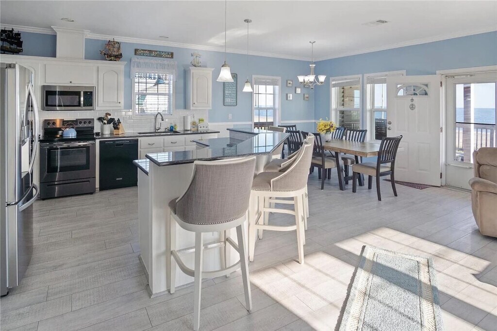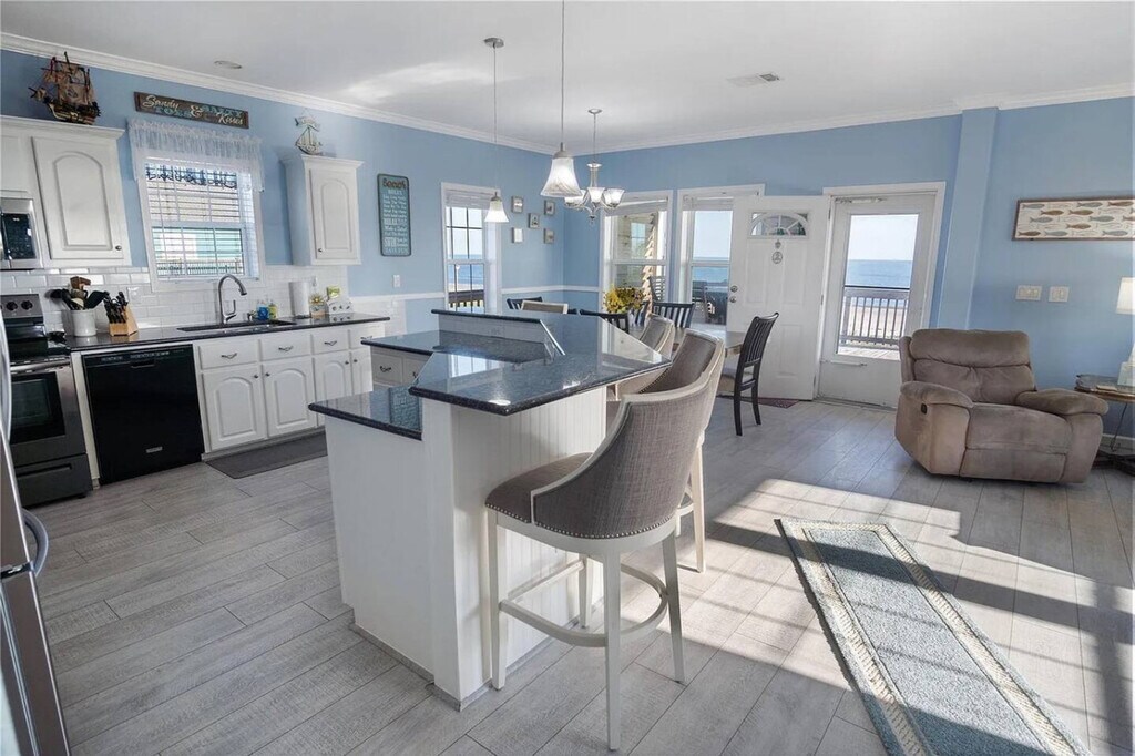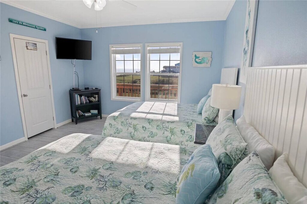 Feel at home in this simple beach house in Gilchrist, made for days by the water. With three bedrooms and two baths, this home is built for ten to sleep well. From the wide deck, you can see the sand and the water. The house features a wide room where the kitchen, table, and chairs all run together. Under the house, there is shade, chairs, a charcoal grill, horseshoes, and an outdoor shower. Outside, a sand shower and games await after the beach. Mosquitoes are notoriously bad at Crystal Beach, so bring bug spray. Gilchrist sits on the quiet end of the Bolivar Peninsula, between the open Gulf and the bay. The beach here is wide and mostly empty. Small cafés, bait shops, and stores lie a short drive away, and the ferry to Galveston waits down the road when you want a day in town. Maximum occupancy is 10 people, and any additional people must be pre-approved prior to final reservation. Grilling on the deck is prohibited and against Galveston County ordinance; grilling is only permitted downstairs on the patio area. If a key is lost, the code is forgotten, or you can’t enter after all access options have been tried, the guest is responsible for any locksmith/re-key costs (call-out, labor, parts, and after-hours surcharges), and reimbursement will be requested with the receipt. If the issue is due to a lock/smart-lock failure or error, it will be covered. If you go to the beach, please rinse sand off in the sand shower under the house or on any of the available water hoses, and leave your sandy shoes on the deck by the front door. Do not flush feminine hygiene products, or anything other than what is expected to be flushed down the toilet, as it will damage the septic system. Do not pour grease down the drains. Park only on the concrete driveway, and be very careful that you do not hit the pilings with your vehicle. If something is accidentally broken, let the host know as soon as possible. Please lock doors and windows upon departure. If guests are asked to leave due to irresponsible and bad behavior, no refund will be given for lost days. The beaches at Crystal Beach have no lifeguards on duty, and swimming is at visitor’s own risk. [SI]