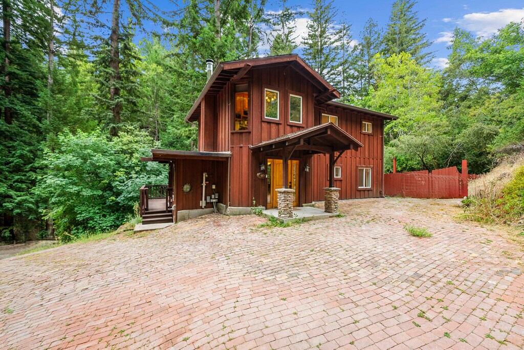 Tucked at the quiet end of Logan Creek Road, this nearly 10 acre retreat blends privacy, natural beauty, and the freedom to create your own homestead. The home sits on 2 parcels with 4 bedrooms, 3 baths, a separate family room, and custom touches that add charm and character. The wraparound redwood deck brings the outdoors into everyday living and overlooks a seasonal creek, terraced gardens, a barn, and a 20 by 20 storage structure. A footbridge leads to a creekside campsite that feels like a private getaway. Mini split units offer comfort in the bedrooms, while a wood burning fireplace grounds the main living space. The property includes a well with storage tanks and filtration, open meadow areas, room for animals, and generous space for oversized vehicles. Reliable Starlink internet supports remote work while you enjoy quiet mornings, wide open land, and a setting that invites you to slow down and breathe.50 Mins from Los Gatos - 50 Mins from Downtown Santa CruzVirtual staging was used in photos