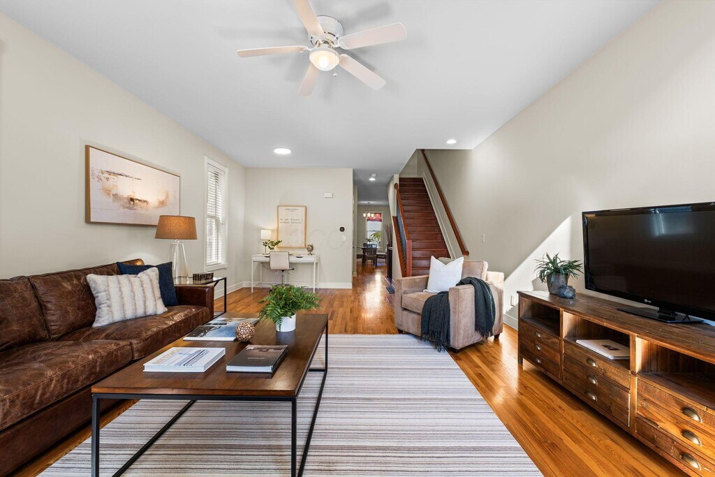6 or 12-month lease available! Live in the heart of Italian Village - just steps to Budd Dairy Food Hall,Fox in the Snow,the Short North,and everything that makes this neighborhood a destination. This rare duplex-style condo was built in 2005 and features brand new carpet and fresh paint. It offers a spacious,light-filled floor plan with hardwood floors,granite countertops,stainless steel appliances,and both a formal dining area and an eat-in kitchen. Upstairs,you'll find two oversized bedrooms with vaulted ceilings,generous closet space,and a large full bath with a jacuzzi tub. The primary suite features a bonus nook that makes an ideal home office or reading lounge. The finished lower level with egress offers a versatile family room,bedroom,full bath,and laundry-ideal for guests,roommates,or additional living space. Out back,enjoy your own private fenced-in yard and patio leading to a detached garage. With unbeatable walkability and a hard-to-find combination of size,privacy,and location,this one is a must-see!