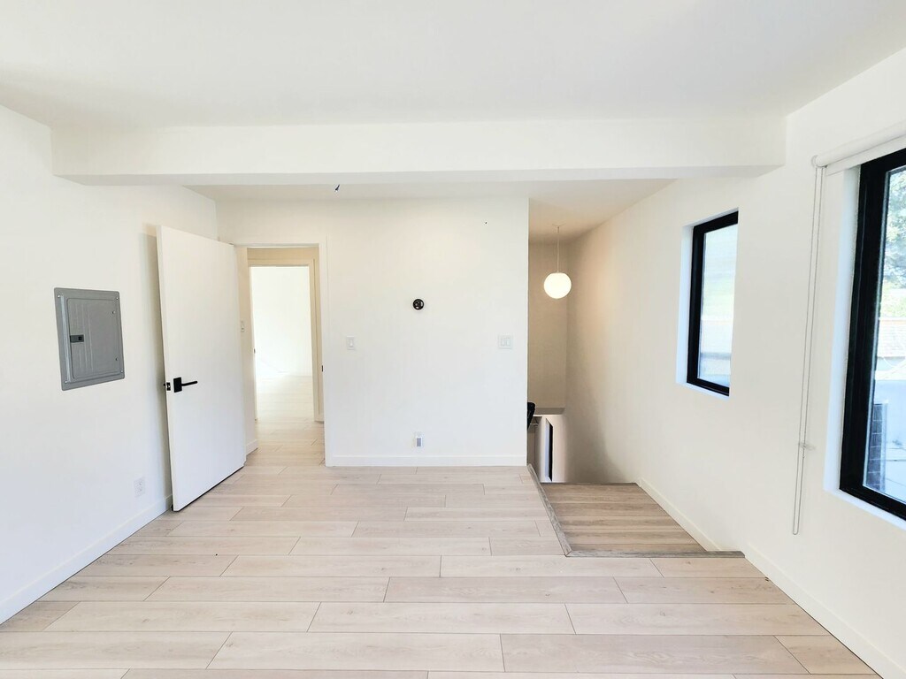 This meticulously renovated two-bedroom two full bathroom duplex offers refined living in one of San Mateo’s most desirable central locations, just a block from Central Park. The home features a stunning custom kitchen, durable hard flooring throughout, and bespoke designer bathroom finishes. A private garage includes a new high-end washer and dryer along with integrated EV charging. Unwind on the serene veranda or step outside for an easy walk to Central Park—urban convenience paired with peaceful living. Solar-powered for utility savings (tenants pay for PG&E and garbage directly). $60 water fee monthly towards shared water in duplex. One year lease, no smoking, no pets.