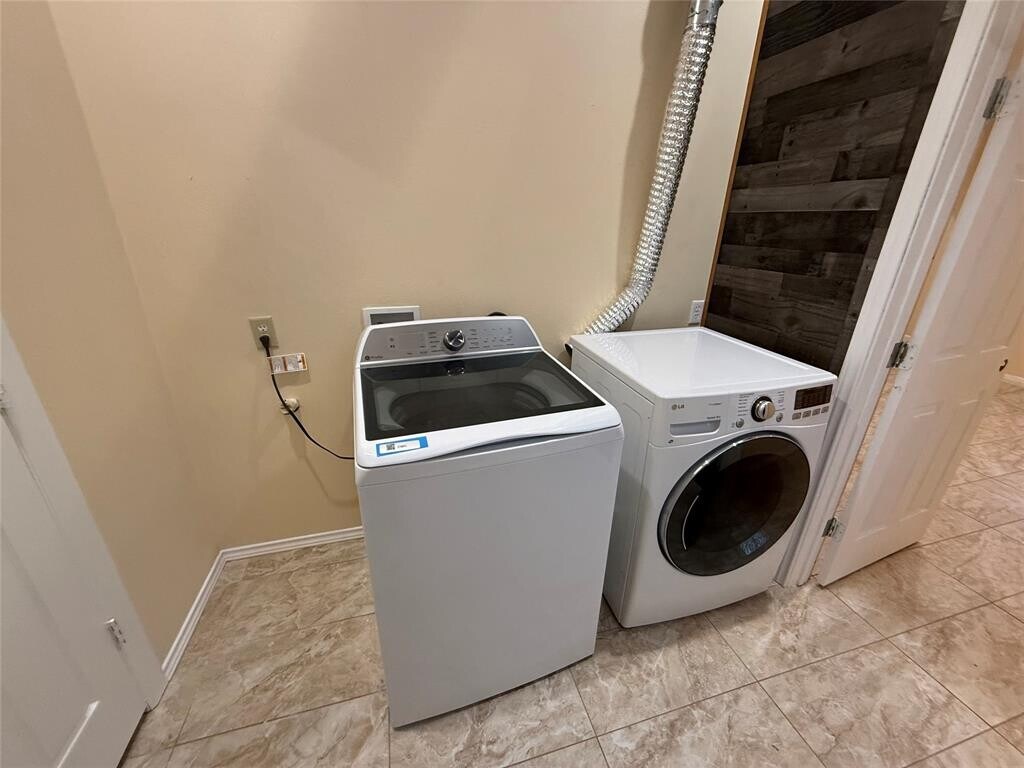 This two-story home offers over 2,400 sq. ft. of living space with a functional and open layout. The main level features an open-concept living and dining area with an electric fireplace and a kitchen equipped with a large island, propane stove, walk-in pantry, refrigerator, oven, and microwave. The laundry room is conveniently located downstairs and includes a washer and dryer. Also on the main floor is a versatile office that can serve as an additional bedroom or mother-in-law suite, complete with its own full bathroom. A half bath is located in the downstairs hallway for added convenience. Upstairs includes four spacious bedrooms, each with a walk-in closet. The primary suite features a private full bathroom, while an additional full bath is located in the hallway. The home offers an enclosed patio and a spacious backyard. Located just 10 minutes from downtown Bastrop and approximately 45 minutes from Austin, this property combines comfort, space, and accessibility. Please note there is a residence located behind the main home; the driveway will serve as a shared common area.
