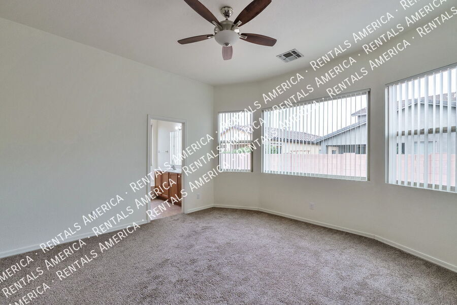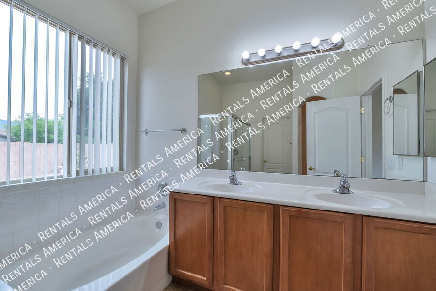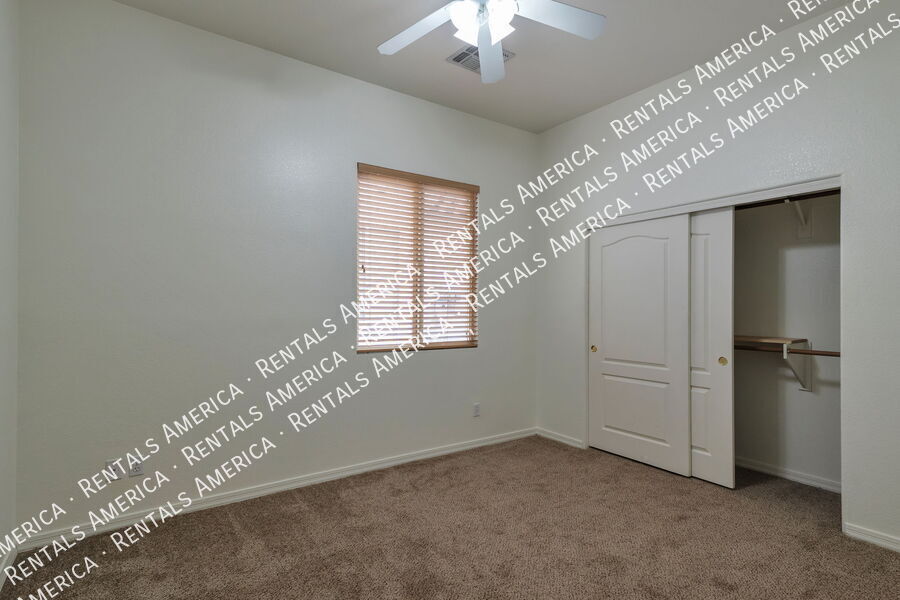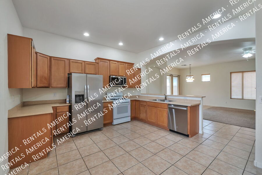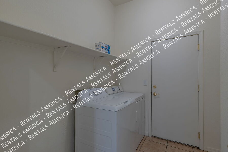 4 bedroom, 2 bath, single story, 1,928 sq ft, split bedroom floor plan. Ceiling fans in living area and bedrooms, multiple decorative niches in living areas. Kitchen features refrigerator, dishwasher, gas stove, built-in microwave, breakfast bar, pantry closet and built-in desk. Master Bedroom offers walk-in closet w/ built-in shelves. Master Bath offers dual sinks, shower, garden tub. Washer and Dryer included. Covered patio w/built-in BBQ fueled by natural gas. 2 car garage. One-Time Admin Fee: $300. Monthly Administrative Fee: 1%. Refundable Pet Deposit: $300/Pet, if applicable. Resident Benefits Package: $39/month. Helping Heroes Discount Available! Dryer Garage No Pets Allowed Washer
