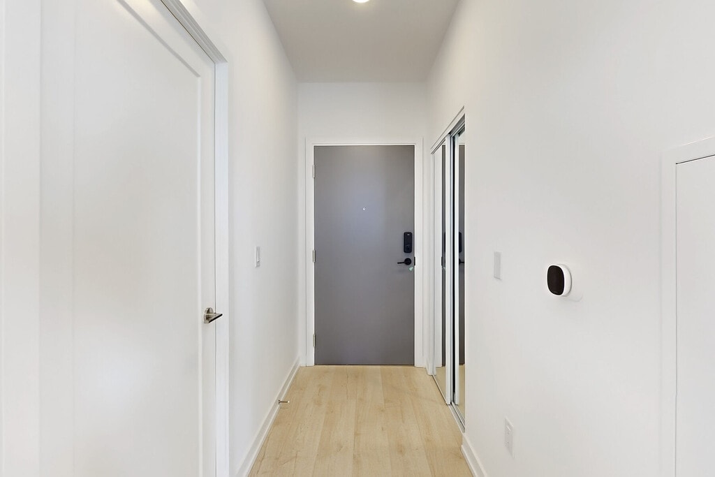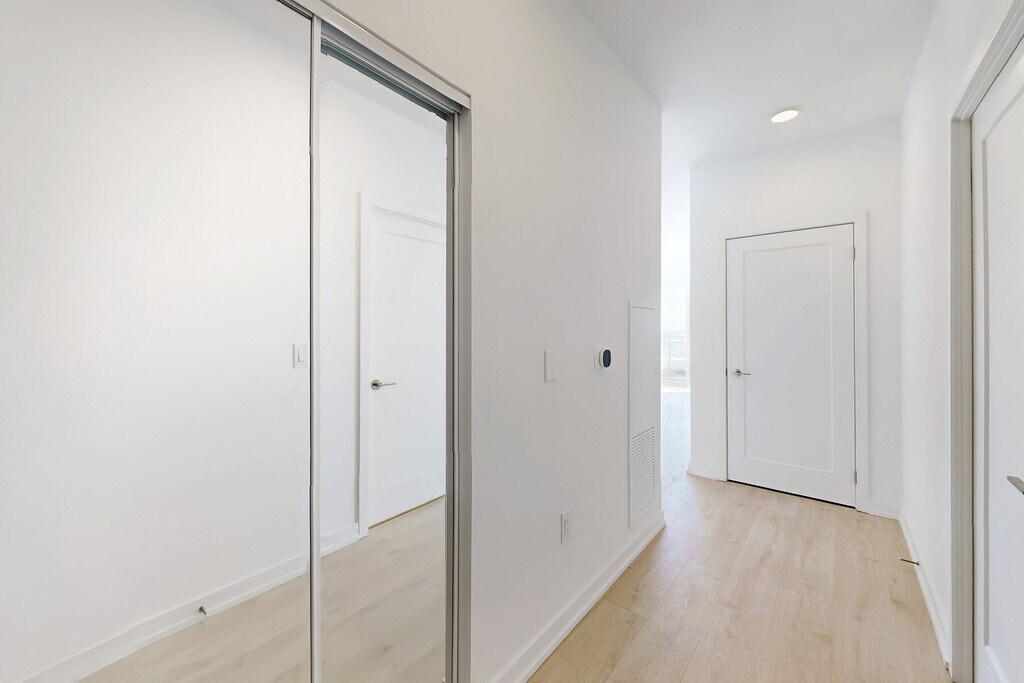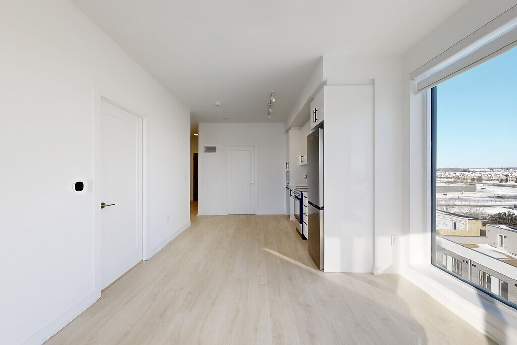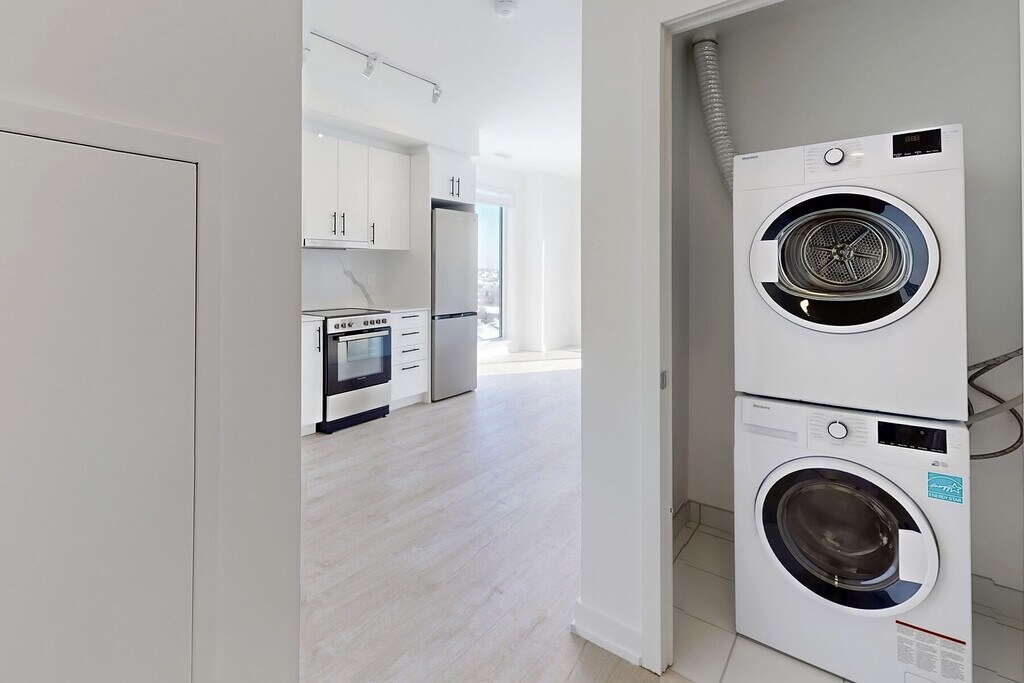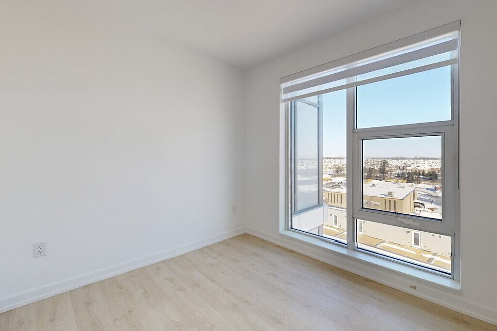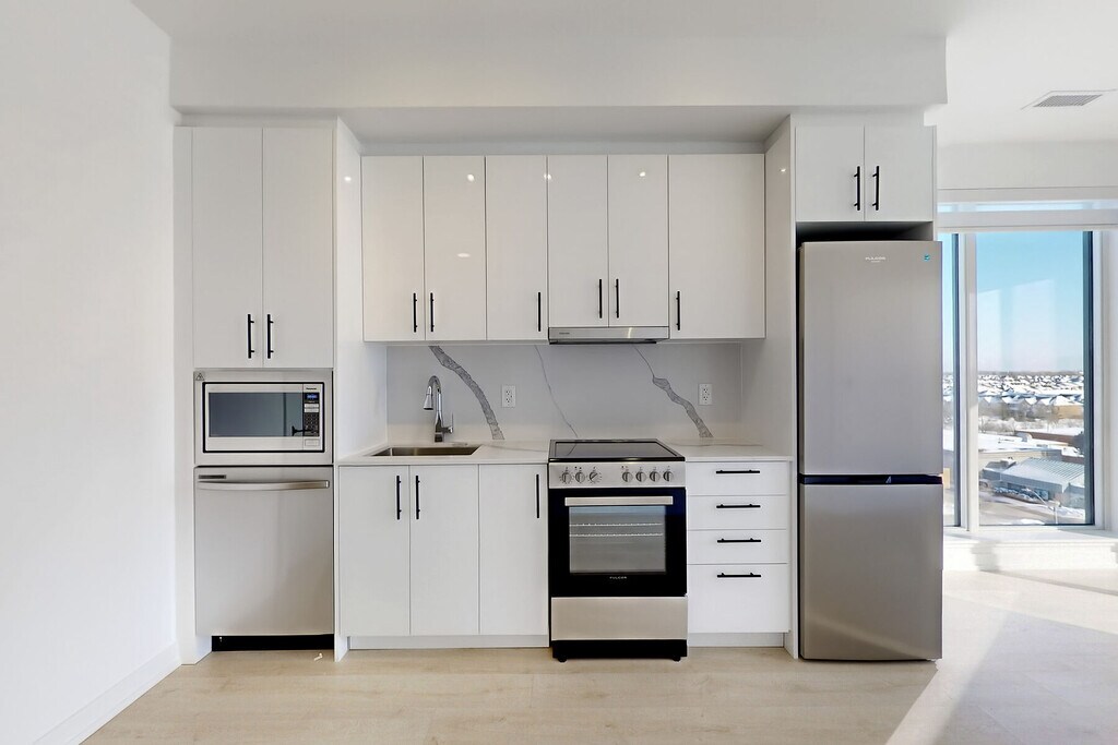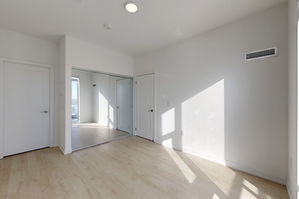 Elevated corner unit offering beautiful southeast views in Joy Station Condos. Brand new, two bedroom, two full washrooms with one parking space included. Sleek and contemporary kitchen designed in an open concept with a pristine all-white colour scheme. Beautifully finished & upgraded suite includes upgraded laminate floors throughout, upgraded quartz countertop and backsplash, soft-close drawer slides & cupboards doors, beautiful blackout zebra blinds throughout, frameless sliding mirrors in primary bedroom. Walkout to balcony from living room. Preferred corner suite with split bedroom layout. Amenities: fitness centre, games room, golf simulator, party room with private dining, self service parcel room, business centre with boardroom. Note: building amenities are not complete until further notice from the builder/property management.