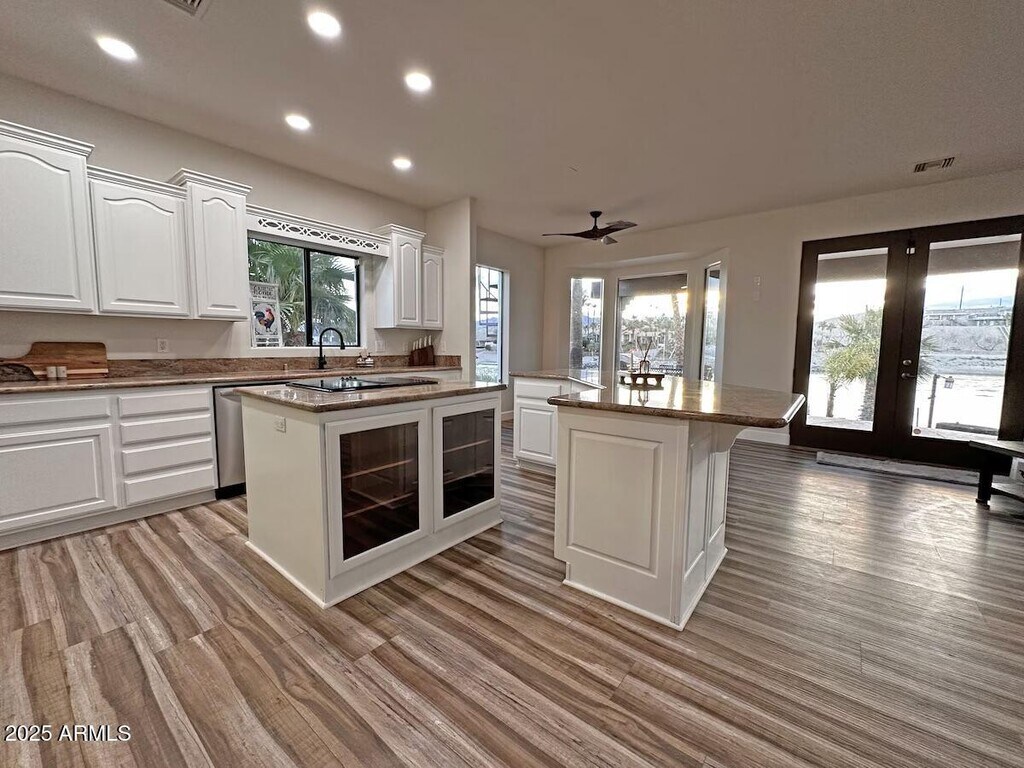 Welcome to Dock Holiday AZ. Rate includes up to 18 guests for MONTHLY Rental. Experience the unparalleled Beauty and Tranquility of waterfront living. Perfectly located between the Entertainment of Laughlin and the Beauty of Lake Havasu,this spacious retreat offers 4 bedrooms and 4 bathrooms. Enjoy the Luxury of your own large dock. The open concept kitchen features granite counters,plentiful cabinetry and a walk-in pantry. The master suite offers his/hers sinks,jetted tub,zero-entry shower & walk-in closet. Outside,enjoy sunsets from your rooftop patio or relax in your 20-foot Jacuzzi/Swim Spa. Vacation Rental revenue available upon request