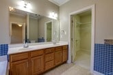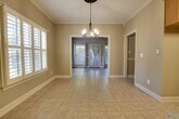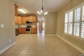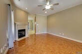 This property features wood floors and a gas log fireplace in the great room,with 9’ ceilings throughout. The kitchen offers granite countertops,ceramic tile flooring,and opens to the dining area and sunroom. The glamour bath includes a corner whirlpool tub for relaxation. Enjoy a private,fenced courtyard with a walkway connecting two patios. Additional perks include walk-up storage from the garage.