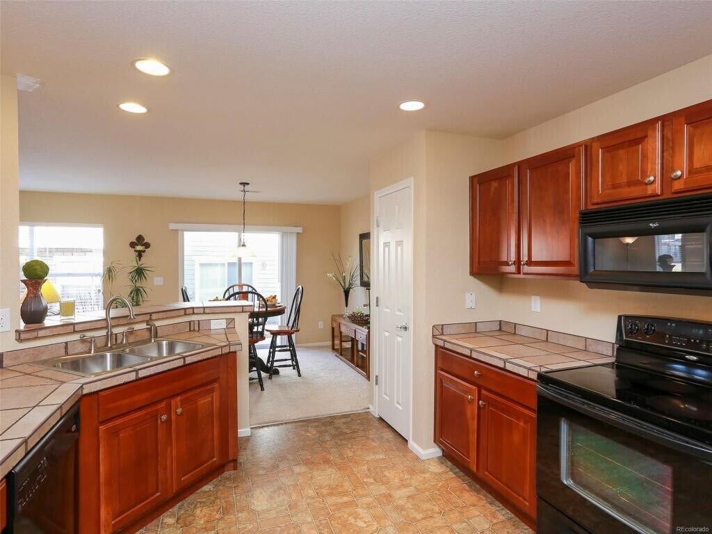 Impeccably maintained end-unit in a quiet community with 4BR, 3 full baths...main floor guest bedroom full bath. This townhouse has an oversized garage (2 spaces) with access to the unit from inside the garage. Open floor plan with many windows and lots of natural light throughout the home. The large open kitchen has cherry cabinets and all the appliances! Washer and Dryer included with private laundry space. Spacious master Bedroom Suite with access to the master bathroom and walk in closets! Located with easy access to C470, I-25 and Lincoln light rail station (1 mile). Minutes away from SkyRidge Medical Center, shopping at Park Meadows Mall, great restaurants, trails, grocery stores more!!