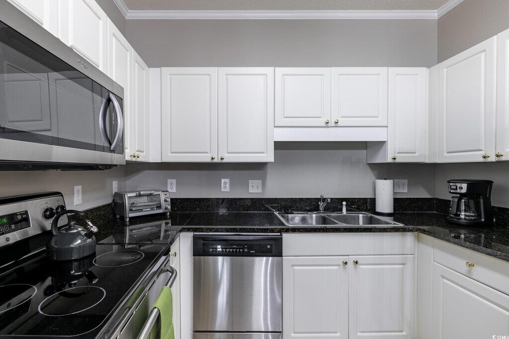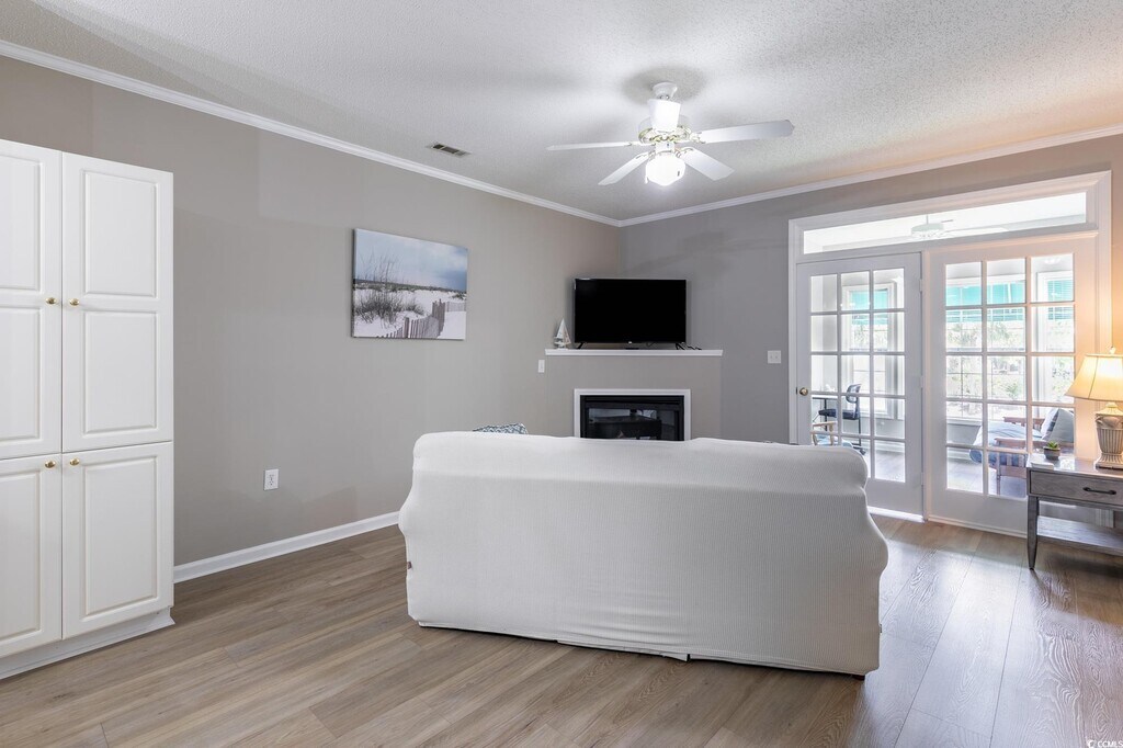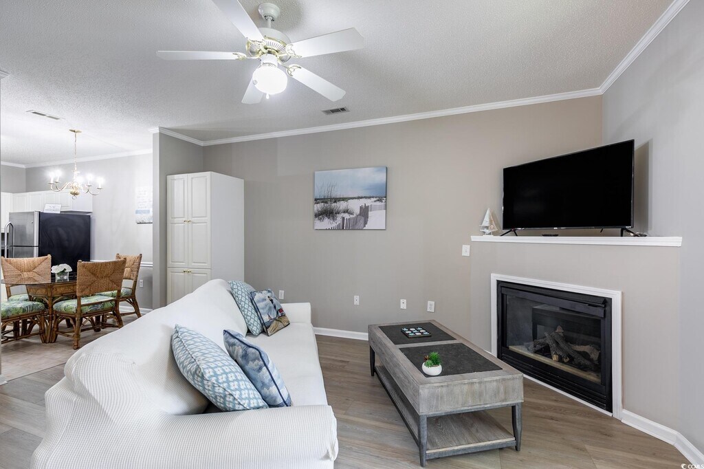 Savannah Shores is one of kind communities in Myrtle Beach. This private,gated neighborhood offers a wide range of amenities,including a beautiful clubhouse,fitness center,large outdoor pool,tennis,pickleball,shuffleboard,and beach volleyball courts,a putting green,playground,grilling stations,and even a car wash area — my personal favorite! You’ll also find a golf cart charging station and bike gazebos,making it an ideal spot for families. This three-bedroom unit is in excellent condition. The walls and trim have been freshly painted,and new wood-look LVP flooring has been installed in the main living areas and bedrooms. Tile flooring is featured in the foyer,kitchen,and bathrooms. The spacious 1,207 square foot layout includes two generously sized bedrooms,a smaller third bedroom with a large closet,and two full bathrooms. The third bedroom can also serve as a sunroom,office,or den. One of the secondary bedrooms is large enough to fit two queen beds comfortably. Home is fully furnished and is move in ready at a great monthly price. Additional interior highlights include 9-foot ceilings,crown molding in the main living areas and kitchen,a cozy fireplace,a wet bar in the living room,and a modern kitchen with granite countertops and stainless steel appliances.