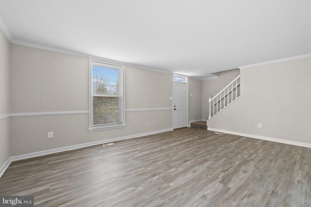 This charming traditional end-of-row townhouse residence offers 3 bedrooms, 2 full bathrooms, and 1,628 square feet for rent in convenient Laurel. Inside, a modern cool-tone color palette creates a fresh, stylish backdrop throughout the home. The main level features gleaming floors and opens directly into the welcoming living room with an elegant chair-rail detailing. The layout flows seamlessly into the bright formal dining area, where side exterior doors allow for abundant natural light. The bright, white kitchen is beautifully appointed with sleek countertops, crisp cabinetry, and a pantry for extra storage. A convenient full bathroom completes the main level. Upstairs, you'll find three comfortable carpeted bedrooms and a full bathroom. The lower level adds even more living space with a spacious recreation room, a versatile bonus room ideal for an office or hobby space, and a dedicated laundry room. Outdoor highlights include a quiet side patio and yard, offering space for relaxation, entertaining, or outdoor dining. RentSpree link included in Agent Comments.