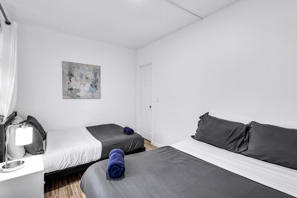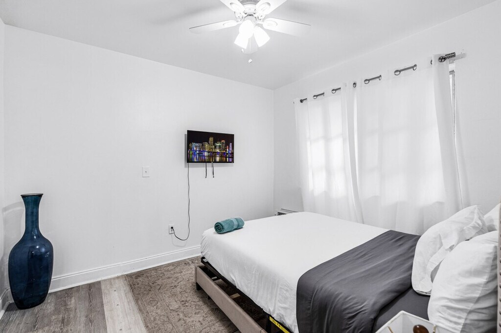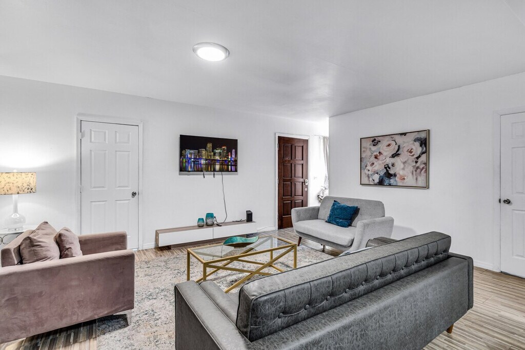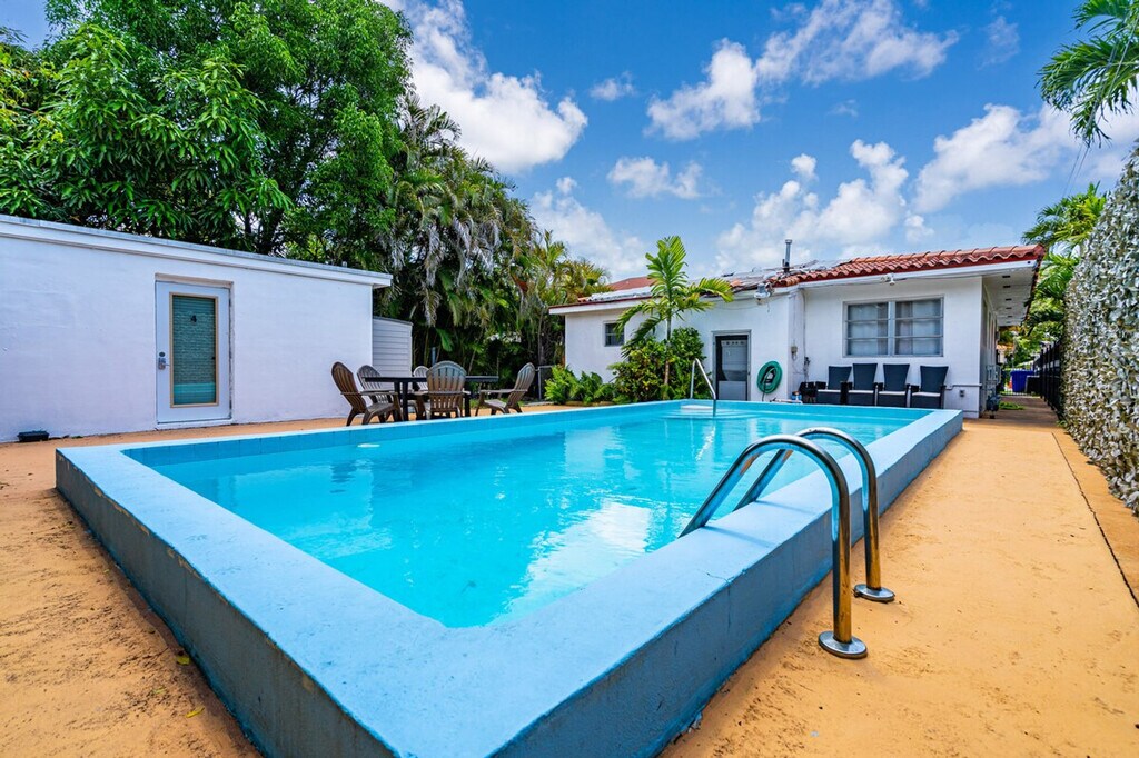Feel at home in this spacious 4-bed, 2-bath home in a multi-family setting, just 15 minutes from South Beach and Wynwood! Perfect for up to 10 guests, this inviting retreat features a bright living room and a convenient single-level layout with no stairs. Each bedroom is thoughtfully designed for a restful night's sleep, offering a mix of queen and twin beds to suit everyone's needs. With two full bathrooms, your group will enjoy privacy and ease throughout your stay. The common areas are crafted for relaxation and connection. Unwind in the spacious living room with ample seating, gather around the dining table for shared meals and conversations, or cook up a feast in the fully equipped kitchen, stocked with all the essentials. Step outside to enjoy the shared patio and large yard. Enjoy air conditioning in every room, secure parking, effortless keypad entry, and refreshing pool access. Stay connected with high-speed Wi-Fi and entertained with a large flat-screen TV. Located in a prime neighborhood, this home offers easy access to local attractions, restaurants, and shops. Whether you're here for beaches, nightlife, or cultural experiences, everything is just a short drive away. Parties or events are not permitted on the premises to ensure a tranquil and relaxing environment for all guests. The maximum occupancy limit should be adhered to.
