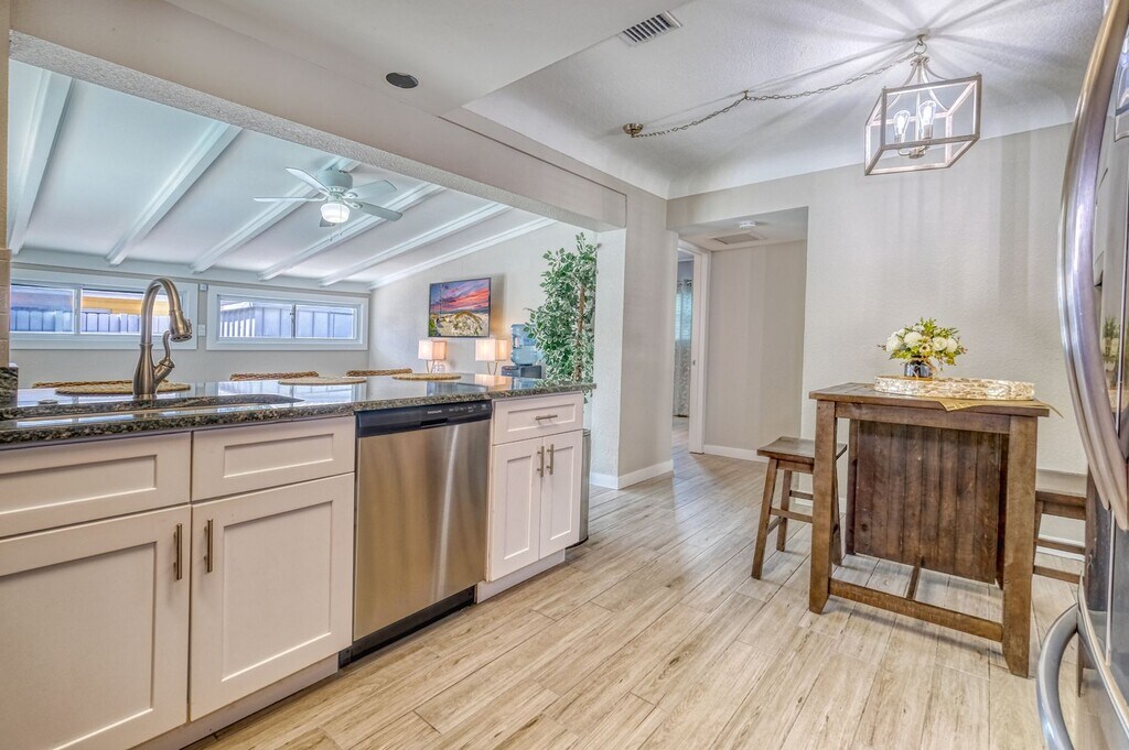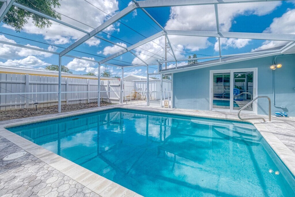 Welcome to your next home in the heart of St. Petersburg! This fully updated 3-bedroom, 2-bathroom residence is located in the desirable Bay Pines neighborhood—just minutes from top-rated Pinellas County schools, great shopping, and the pristine shores of Madeira Beach. From the moment you arrive, you’ll notice the fresh curb appeal with new landscaping, a paver driveway, and a freshly painted exterior. Step inside to find wood-look ceramic tile flooring that flows seamlessly throughout the entire home. The spacious main living area leads into a beautifully updated kitchen, complete with granite countertops and stainless steel appliances—perfect for everyday cooking or entertaining. A secondary living/dining area opens to a screened lanai overlooking the large heated pool, offering the ultimate Florida lifestyle right in your backyard. The split floor plan offers ideal privacy. The primary suite includes ample closet space and a renovated en-suite bathroom with a walk-in shower. On the opposite side of the home, you’ll find two additional spacious bedrooms and a second full bath, which also serves as a convenient pool bath. The converted garage houses a full laundry room and provides flexible space for a home office, gym, media room, or even a fourth bedroom. Outside, the fenced backyard is perfect for entertaining or relaxing, with additional storage available in the backyard shed. The home is being offered partially furnished, with flexibility to remove select items upon request. Don’t miss this opportunity to live in one of St. Pete’s most convenient and charming neighborhoods. Available for an annual lease—schedule your private tour today before it’s gone!