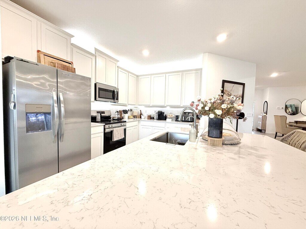 Built in 2024,this beautifully designed 4-bedroom,2-bath home in the Saddle Oaks community offers modern living with space and privacy. Inside,you'll find an open-concept layout with a spacious living and dining area,upgraded kitchen featuring stainless steel appliances,a large island,and ample cabinetry--perfect for everyday living and entertaining. The split-bedroom floor plan provides added privacy,while the primary suite includes a spa-like bathroom with dual vanities and a large walk-in shower. Step outside to an oversized .22-acre lot with a fully fenced backyard and no direct rear neighbors,offering a peaceful setting rarely found in newer construction homes. A 3-car garage provides plenty of room for vehicles,storage,or hobbies. Located in Saddle Oaks,residents enjoy community amenities including a pool,playground,dog park,and scenic pond,all with convenient access to I-295,Jacksonville International Airport,Downtown Jacksonville and NAS Jacksonville. Lawn Care Jacksonville International Airport,Downtown Jacksonville and NAS Jacksonville. Lawn Care and Internet included. MLS# 2141408