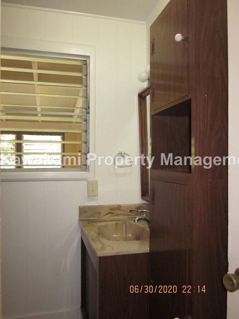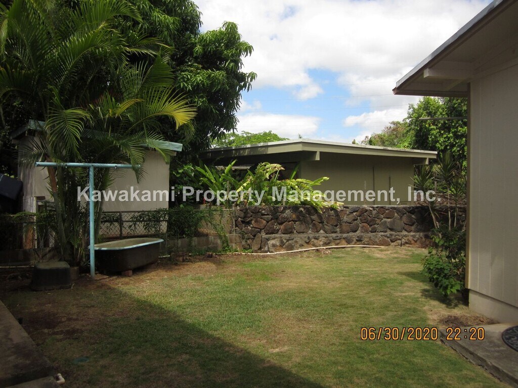 This 3 bedroom, 2 bathroom, 1562 sq. ft, single story home is conveniently located on a quiet street within blocks of Pali Momi Medical Center and Pearlridge. This home features wood laminate flooring throughout, a private & shady backyard, a large storage room in the 2 car carport and an enclosed lanai/laundry area. Appliances include an electric range, refrigerator, full sized washer and dryer. Each bedroom is air conditioned and there is a window AC in the living room as well. This home is available for a 1 year lease. NO pets.The tenant is responsible for all utilities and yard service is provided. Please contact Sheila Kawakami (R) License #RB-19847, to schedule a showing. or Renter's Insurance is required $22 application fee Kawakami Property Management, Inc.