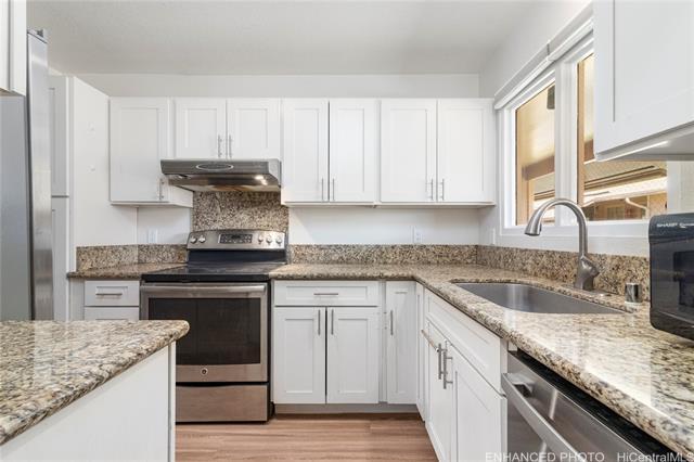 Welcome to Waiau Garden Villas, a highly sought-after community in the heart of Pearl City. This beautifully updated home features luxury vinyl plank flooring, window air conditioning and modern bathrooms, offering a comfortable and stylish living space in a convenient Central Oahu location. The community offers great amenities including EV charging stations, a salt water swimming pool, and a recreation room—perfect for relaxing, entertaining, or enjoying weekends with family and friends. Located just minutes from Pearlridge Shopping Center, you’ll have easy access to shopping, dining, and entertainment, as well as quick freeway access in both directions, making commutes to Honolulu, Aiea, and Kapolei a breeze. Nearby schools, parks, and public transportation add to the everyday convenience. Rent includes water, sewer, trash, cable, and internet—giving you more value and fewer monthly bills to manage. Pets are welcome, too! Experience modern island living in a well-maintained community that combines comfort, convenience, and connection—right here at Waiau Garden Villas in Pearl City. Schedule your showing today! Available Nov 01, 2025