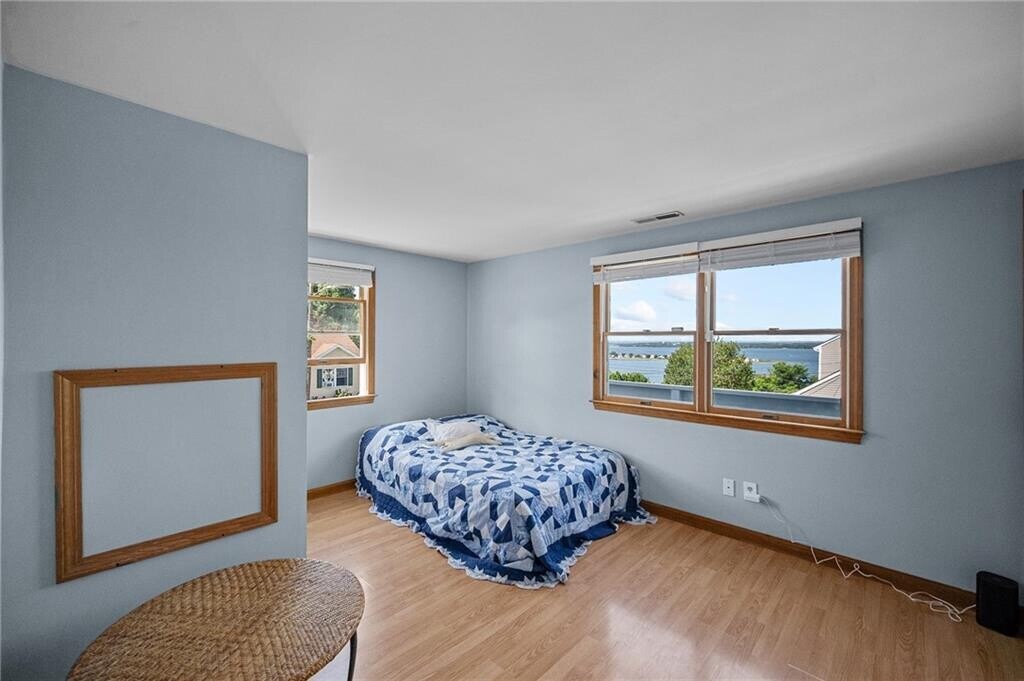 *Year Round Rental* March 1st. Spacious 3-bed,2-bath house for rent in Tiverton! The main floor features a living room with cathedral ceilings,skylights,hardwood floors,a modern kitchen,a dining area,a bedroom,and a full bathroom. Two sliding glass doors open to a wrap-around deck and a huge fenced-in yard,perfect for dog lovers. Upstairs,the large master bedroom includes a walk-in closet and access to an upper-level balcony with stunning views of Mount Hope Bay. There is also a second bedroom and a full bathroom on this level. The laundry room is on the lower level. The property has deeded rights to a private beach at the bottom of the hill,just minutes from Grinnell's Beach,Fort Barton,and the Boat House. Newport and Providence are only a 30-minute drive away. Tenants are responsible for all utilities: gas,electric,water,and snow removal. The owner is responsible for yard maintenance. MLS ID 1403946