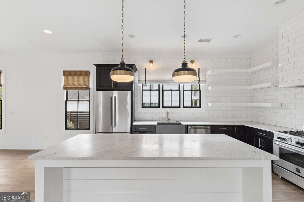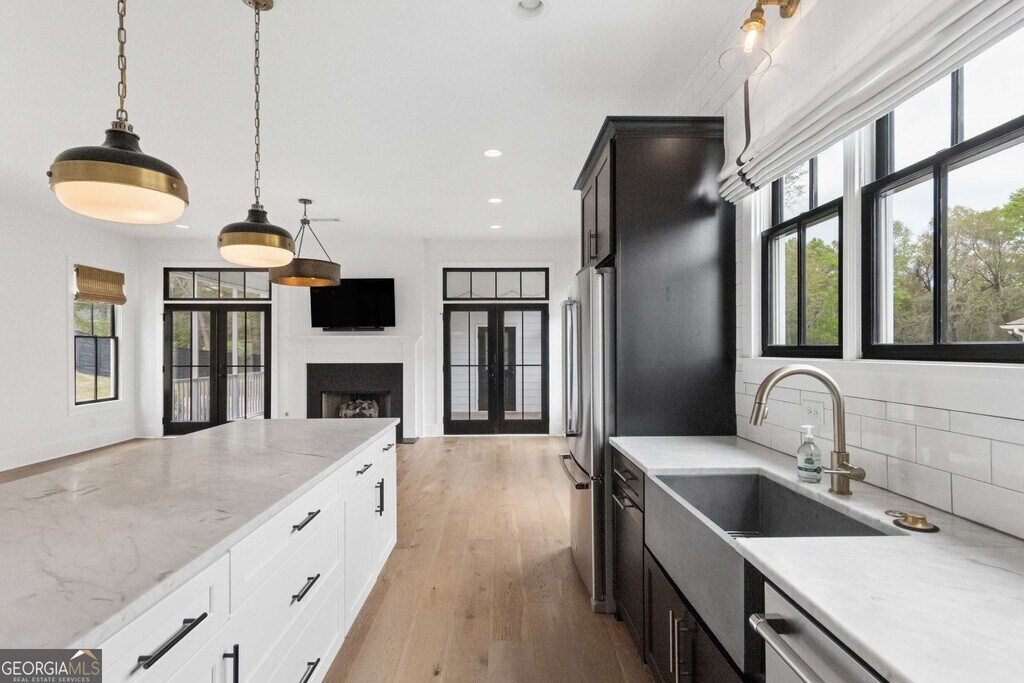 FANTASTIC 4 BEDROOM RENTAL IN HISTORIC SENOIA! Enjoy living in Senoia in this beautiful Modern Farmhouse. Walk or golf cart to shopping, dining, the gym, or Saturday Farmer's Market. This home has it all, with hardwood floors and designer lighting and window treatments throughout. The main floor includes a living room/study with glass french doors for privacy. With a closet and connecting full bath, the study could also be a 4th bedroom. The open concept great room has a dining area, family room with fireplace, and kitchen with marble counters, stainless appliances, floating shelves, subway til backsplash, and huge island with breakfast bar seating. The family area opens to a large screened porch connected to a private fenced yard and brick patio. The two car garage is located just behind the covered porch for parking and/or storage. The upper level features a beautiful primary suite with gorgeous spa-like bath and custom walk-in closet, 2 secondary bedrooms that share a Jack & Jill bath, and a laundry room with sink. Senoia is a thriving historic town with an eye toward the future! It is a golf cart friendly town with lots of community activities - Weekly Farmer's Market, Alive After Five, PorchFest, Car Show, Light Up Senoia, and Candlelight Tour of Homes, to name a few! Come for a visit and find The Perfect Setting for Life"!" MLS ID 10722291