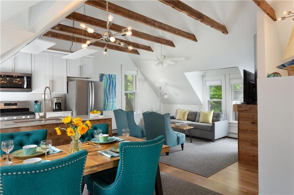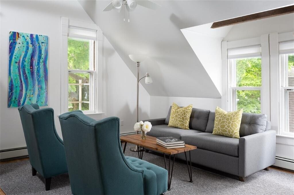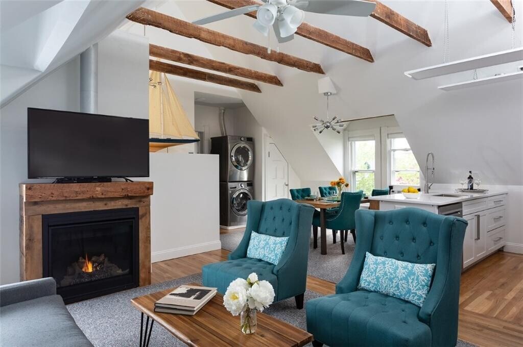 Available one month August 1st-30th 2025 . Walk to everything from this absolutely beautiful one bedroom apartment in downtown Newport. The building and unit have been completely renovated and stylishly furnished. The unit is completely turn-key from furnishings,linens,dish ware etc. Enjoy the cozy gas fireplace,laundry in unit,hardwood floors and one off-street parking space. Beautiful outdoor patio in the back yard. Water,internet and cable are included in the rent. Perfect Naval War College rental!