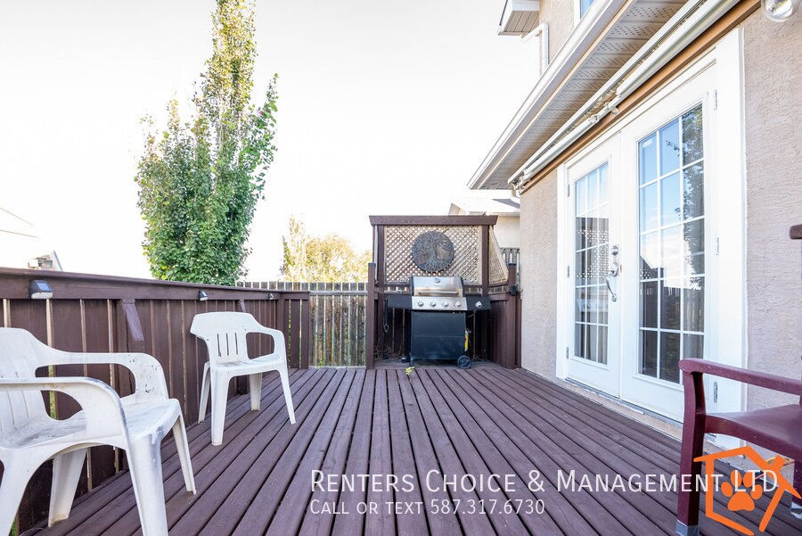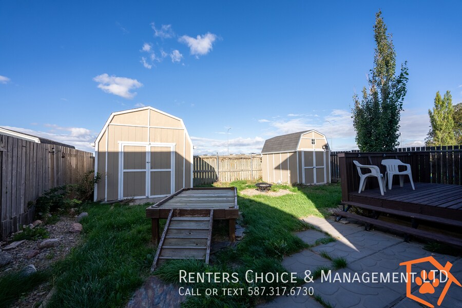 NO OBLIGATION, NO COST APPLICATION PROCESS PRICE: $2250 TOP FLOOR: Master Suite with Walk-in Closet and Ensuite Bath (4pc featuring Jetted Tub). Bedroom 2 Bedroom 3 Bathroom 2 - 4pc MAIN FLOOR: Kitchen featuring Double Pantries, Stainless Steel Appliances and Island Dining Area with Deck Access and Bonus Closet Living Room Bathroom 3 - 2pc Laundry Closet with Cupboard Space FINISHED BASEMENT: Family Room Bathroom 4 - 3pc featuring Jetted Tub and Open Shelving FEATURES: Fenced Yard with Deck, Patio and 2 Sheds (each with 110V power and lights!) Extra Storage Space Home includes Central AC, Central Vac (2 cannisters with accessories), Pool Table with accessories, TVs with stands (x3) and speakers (x2 sets) plus a BBQ for tenant use! PARKING: Attached Garage - 2 Car Heated Garage with 110V Power and Workbench off-street Driveway Parking - 2 Car, off-street APPLIANCES: Fridge Stove Microwave Dishwasher Washer Dryer PETS: Pet Program Participant Sorry, No Dogs. UTILITIES: Tenant Responsibility Assigned Outdoor Parking Central Vacuum Convenient To Amenities Full Finished Basement Pet Friendly