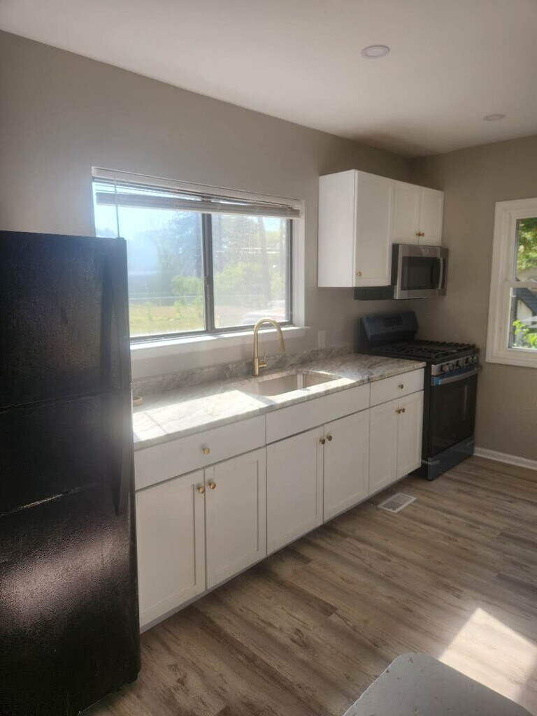 fully remodled house, new bathrooms. new floors. fresh paint. 2 bedroom with one full bath in first floor. 1 big bedroom with full bath in 2nd floor. new big deck with fenced yard.. $400 non-refunable cleaning fee. $40 per adult application fee. Employment/income verification ( minimum 3 times of rent), 1st month rent due at move in, 1.5 months security deposit due at signing. no smoking inside. no pet.