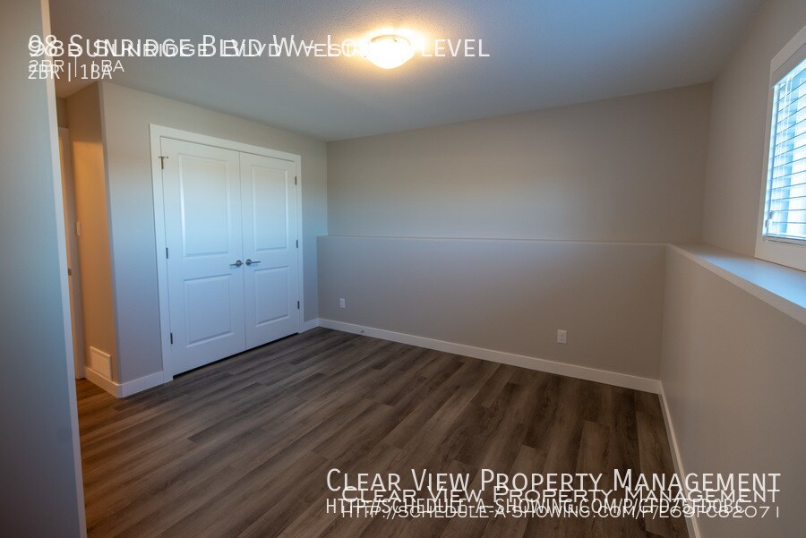 This home has everything that you are looking for! Amazing 2-bedroom, 1 bathroom home with zero scaped yard. Located directly across from a lake, playground, and park!! Minutes from the university by bus or car, and easily within biking distance this property is a great opportunity for students and families alike. Enjoy the neighborhood of Sunridge which is centrally located to shopping, the new West Lethbridge YMCA and the University of Lethbridge!! The outdoors person will love the proximity to the coulees and Paradise Canyon Golf. Quick and easy access to the industrial park, downtown and highway 3. ~ All appliances, and amenities. ~ Large Kitchen with breakfast bar, and quartz countertops. ~ 2 bedrooms 1 bathroom with plenty of storage. ~ Zero scaped yard with synthetic rear lawn 360 Tour: To book a showing please visit: Lease terms: - 15 month lease - Security deposit equal to one month rent - Tenant insurance is required - Utilities not included and split with other suite - Small pet negotiable with a $50 monthly pet fee per pet All of our tenants are automatically enrolled in our Tenant Benefit Package including: - Online Resident Portal for making payments, reporting repairs, etc. - Furnace filter delivery every six months. (if required) - 24/7/365 maintenance & repair hotline. - Free recurring e-payments. - Lockout service to cover one tenant lockout every six months Rental application required and references will be contacted before application is approved. Apply today at: