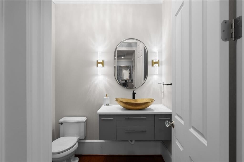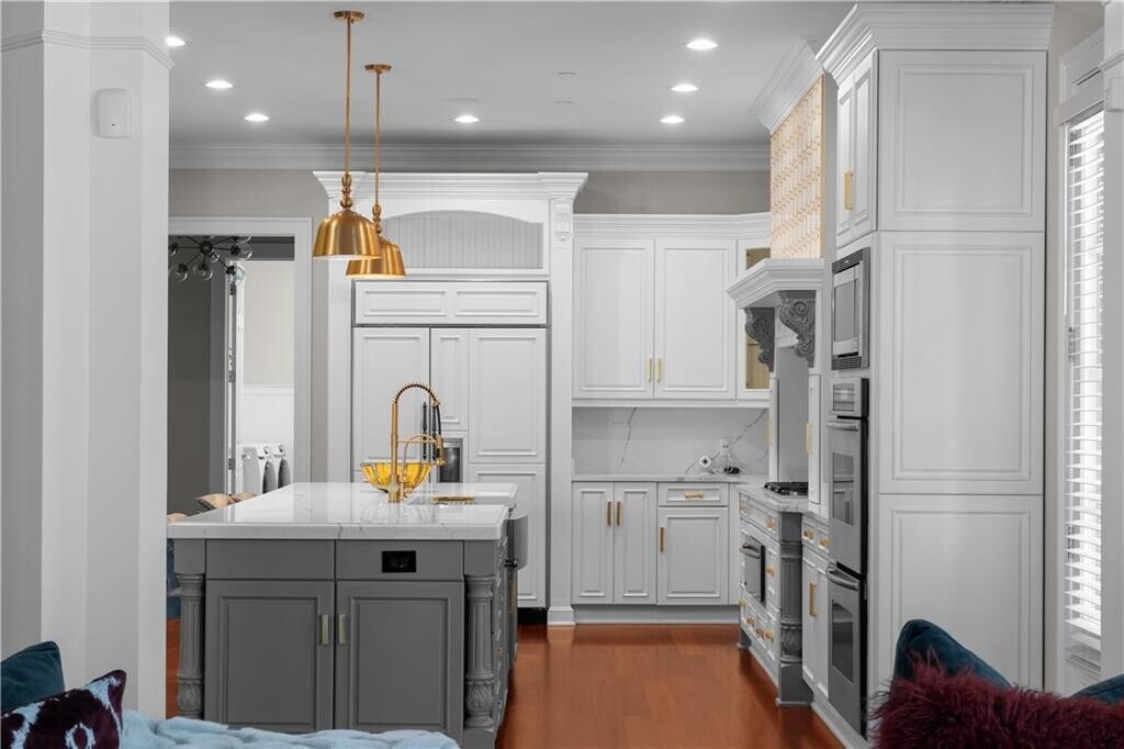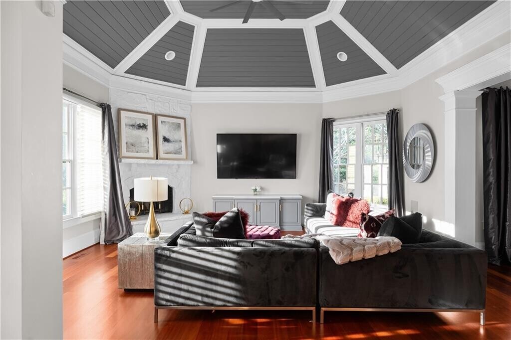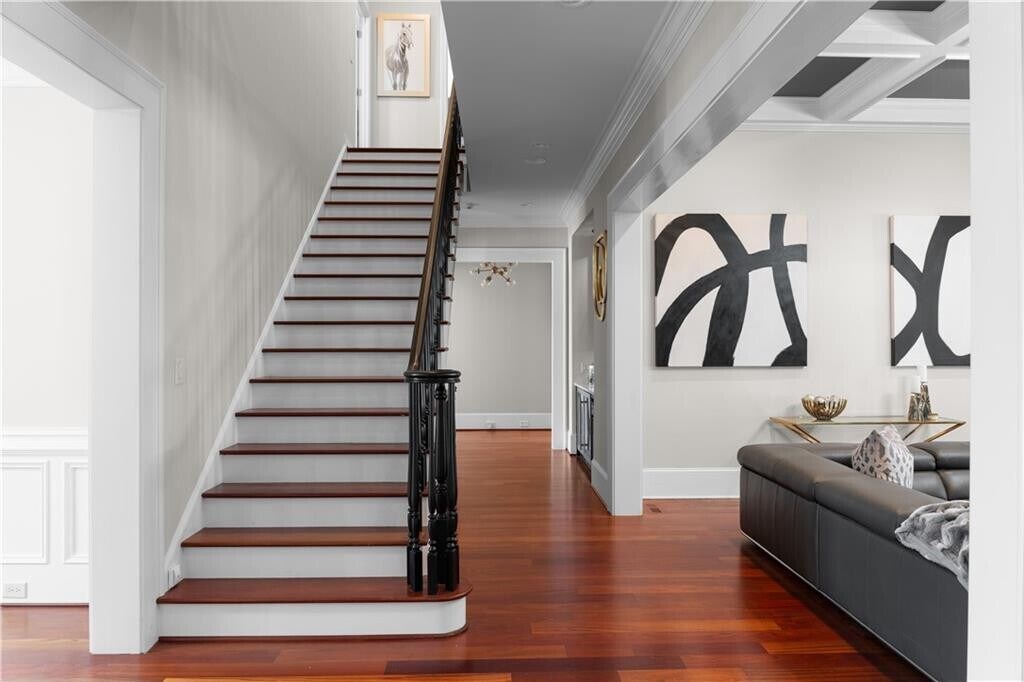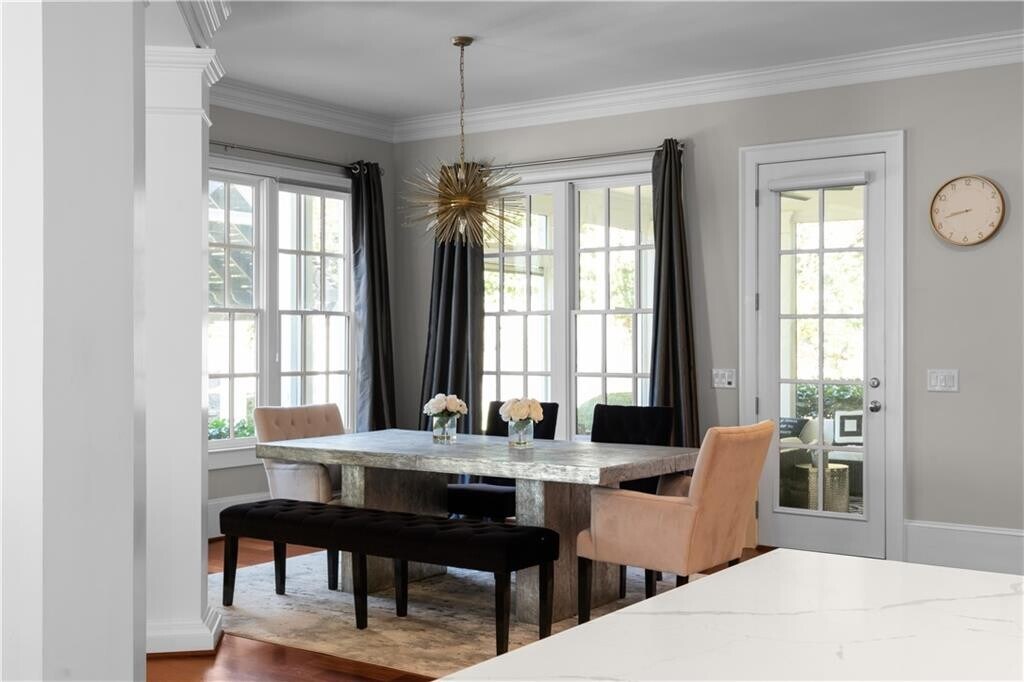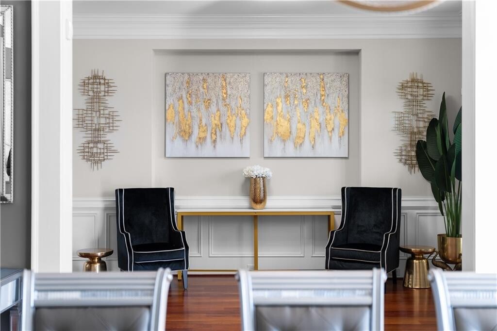 Tucked inside an exclusive gated enclave of just four residences,this estate offers privacy,scale,and elevated design in a prime location near GA-400 and premier shopping. Brazilian Cherry hardwood floors and 10-foot ceilings create a warm,refined entry,while the main-level primary suite provides both luxury and convenience. The open-concept layout features a dramatic beamed family room and a chef’s kitchen anchored by a 10-foot quartz island,complete with a full Thermador appliance suite,built-in coffee system,custom cabinetry,and butler’s pantry. A formal banquet dining room and dual staircases enhance both flow and functionality. Upstairs offers four spacious en-suite bedrooms and a versatile bonus retreat. The fully finished terrace level includes a recreation lounge,bar,temperature-controlled wine cellar with adjoining cigar room,theatre,gym,and a soundproof podcast or recording studio. Outdoor living is equally impressive with a covered pavilion,fireplace,manicured grounds,and a three-car garage with Tesla charger. A rare opportunity within a limited four-home community,in bustling Sandy Springs! MLS ID 7720175