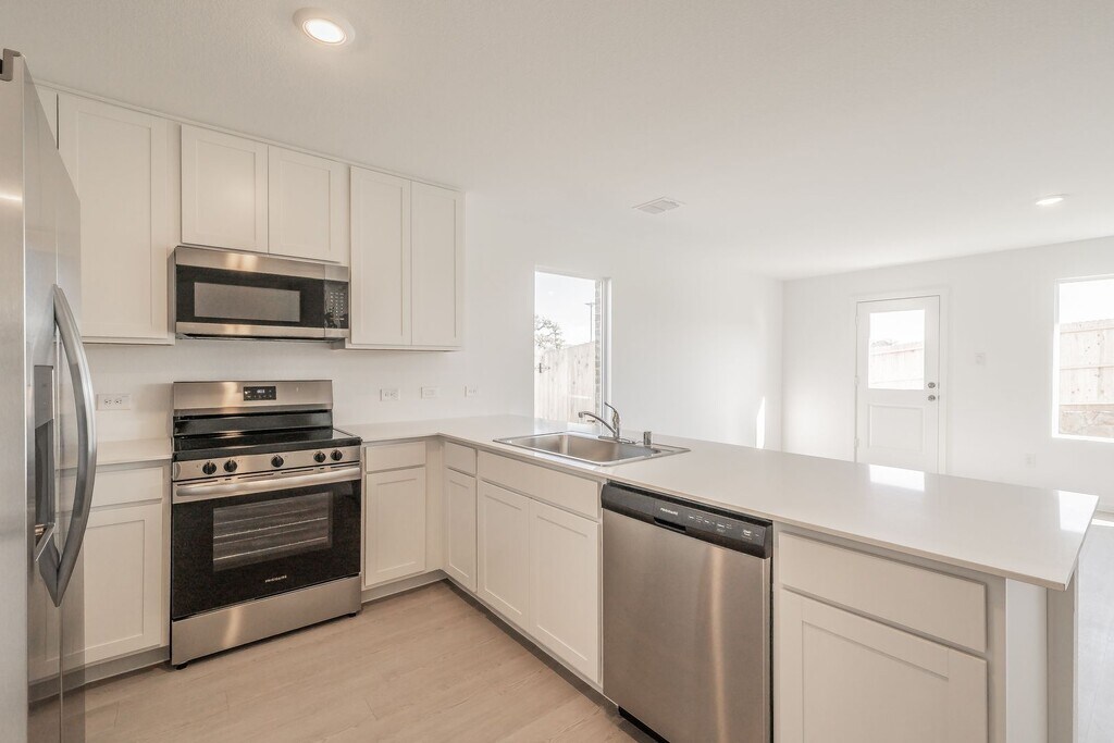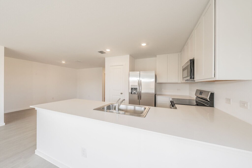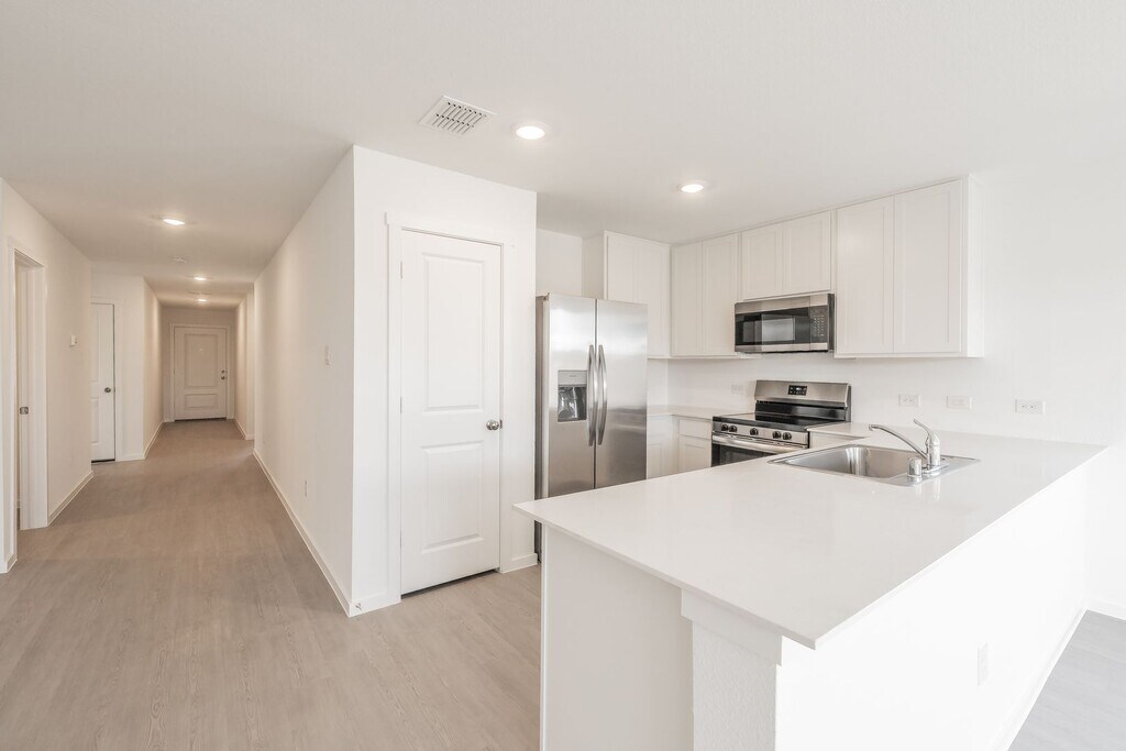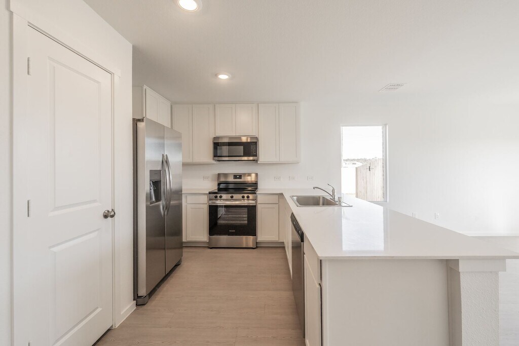 Beautiful, brand-new single-story home featuring 4 bedrooms and numerous upgrades. The kitchen boasts stunning quartz countertops and stainless steel appliances. Enjoy a thoughtful split-bedroom layout, with quartz countertops in both bathrooms. Luxury vinyl plank flooring enhances the hallway, kitchen, living, and dining areas, while cozy carpet adds comfort to the bedrooms. The fully fenced backyard offers privacy and space to relax or entertain. Owner prefers no pets. Photos will be posted soon!