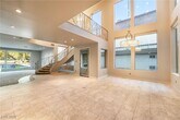 Remodeled Guard Gated Las Vegas Country Club 2-Story Home on the Golf Course. Home Features: Custom interior/exterior metal works, Large Family Room with Fireplace and built in surround sound,Custom stone work throughout the house. Large tinted windows with plenty of natural light and custom shades. Tile and carpet throughout and Access to the Backyard. Open Kitchen with custom cabinets, granite Counters and Stainless Steel Appliances and skylights. Dining Area Adjacent to the Kitchen. Primary Bedroom with En-Suite Primary Bathroom with Separate Shower. Large Walk-in Closet. 2nd Bedroom with En-Suite Full Bathroom with deep soaker tub, skylights and Large Walk-in Closet. Patio. Salt water spool.Oversized 2-Car Garage with Cabinets. Stunning Views!