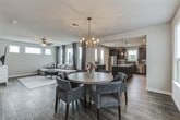Welcome to this gorgeous home in sustainable Whisper Valley, built by award winning green home builder of the year, Thurman Homes on an oversized, .68 acre lot! Flooded with light, this home features wood-look tile throughout the main living areas; oversized windows; Roman privacy blinds; 8ft front door; modern, iron banister; Google doorbell and lock; and Nest thermostats. The state of the art kitchen is the heart of the home and features: large, center island; Quartz countertops; High end range and appliances; extra cabinets; premium hardware selections; and soft close cabinet doors and drawers. The spacious primary bedroom has views of the green spaces and a luxurious ensuite bath with double vanity, and huge, walk-in shower with custom tile wall and double shower heads. The whole house is packaged with 100% foam insulation for cooler performance and benefits from geothermal heating and cooling, and solar panels. Whisper Valley has won many awards including "Best Master Planned community" in 2022 and Project of the Year in sustainable design and innovation" in 2021. It boasts over 600 acres of green space with walking trails, and community gardens