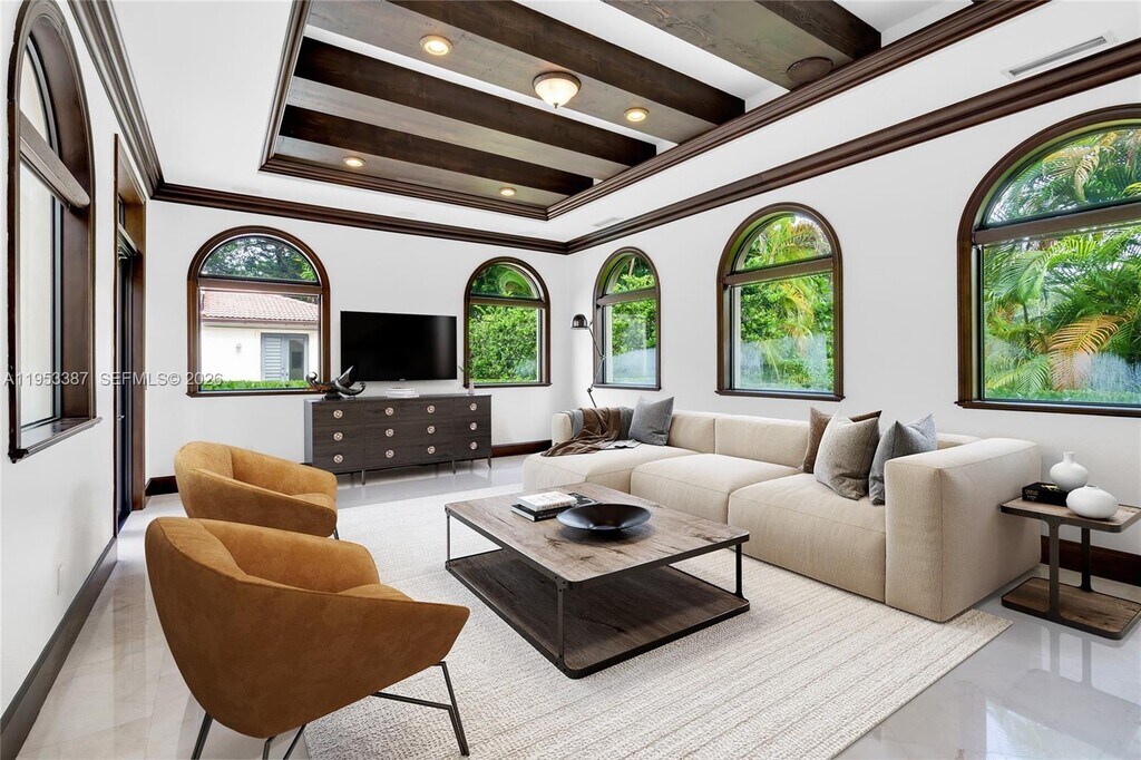 Spectacular Mediterranean-inspired estate in the highly coveted Pinecrest community. Nestled on a beautifully landscaped, oversized 0.73-acre lot, this custom masterpiece offers unparalleled luxury living with 9 bedrooms and 9+ bathrooms. Grand foyer with soaring ceilings welcomes you into a two-story layout featuring marble and wood floors, a chef’s kitchen with high-end appliances, elegant living and dining spaces, media/theater room, wine cellar, and elevator. Resort-style outdoor living with pool, spa, lush gardens, and multiple entertaining areas. Property includes 2 separate guest houses, each with 1 bedroom, 1 bathroom, and full kitchen, plus a separate in-law suite with ensuite bathroom. Abundant parking with 4-car garage. Prime location near top-rated schools and premier dining and shopping. A true Pinecrest showpiece. MLS # A11953387