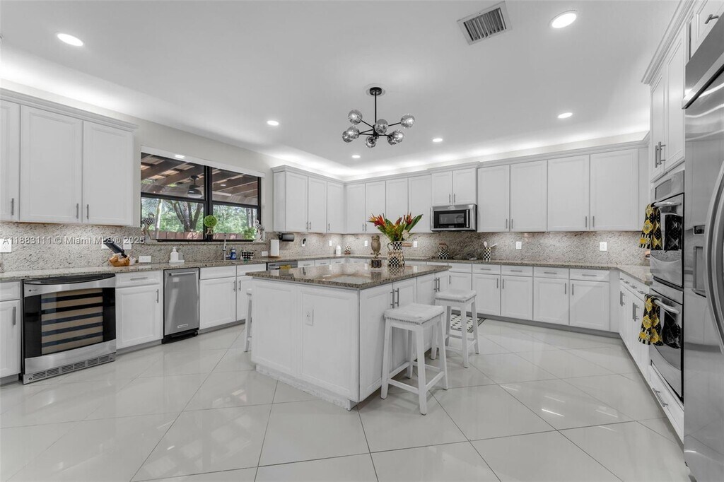 Exquisite spacious corner home at the gated community of Grand Bay Estates. Elegant 2-story residence with 4,159 SF, offering comfort, high ceilings, plenty of natural light, 5-beds, 5-remodeled baths, walk-in closets. Master bath with double shower & tub; White porcelain flooring on first level & laminate wood on the second. Living room, florida room, formal dining and a thoughtfully designed kitchen, equipped with stainless steel appliances, ample cabinetry and big island. Charming outdoor patio with artificial grass, perfect for gatherings and barbecues, 2-car garage with an electric car charger, and 3 cars in driveway + extra guest parking infront. Resort-style clubhouse with pools, cabanas, sports amenitiies, events rooms. Pet-friendly community. Option for furnished also available.