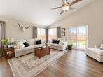 Gorgeous home with maincured front lawn and covered front porch with a picturesque view of Pikes Peak! Large entry/foyer, sleek open floor plan and newer LVP flooring through main level! Living room features modern floor-to-ceiling electric fireplace with shiplap surround and floating wood panel for a polished, contemprary look. Walk out to lush fenced backyard with open space behind for added privacy! Charming dining area includes cozy built-in bench and modern farmhouse-style lighting. Modern kitchen features stainless steel appliances (including gas stove), large counter bar, granite countertops and complimentary backsplash! Primary bedroom on main level includes vaulted ceiling, ceiling fan and striking accent wall with modern panel detailing in a rich, dark finish. Attached 5 piece bathroom features soaking tub, dual vanities and walk in closet! Two additional bedrooms on main level with easy access to full hall bathroom. Finished basement provides for large rec/family room, two large bedrooms (one with a walk in closet), additional bathroom and storage space! Laundry room on upper level with provided washer/dryer! Additional property amenities include central air, sprinkler system, and attached 3 car garage! Located close to military bases, hiking trails, and minutes away from amenities in Fountain, all that's left is to move into this stunning turnkey home! *Owners may epoxy garage floor prior to move in* **Owners may take fridge after move out, will replace with another stainless steel model** ***Some photos have been virtually staged*** 12-24 month lease Security deposit must be paid in certified funds Amount based on credit report findings 2 dogs allowed Management approval needed No aggressive breeds School District: 3 Widefield Webster Elementary School Sproul Junior High Mesa Ridge High School For more information or to apply, visit