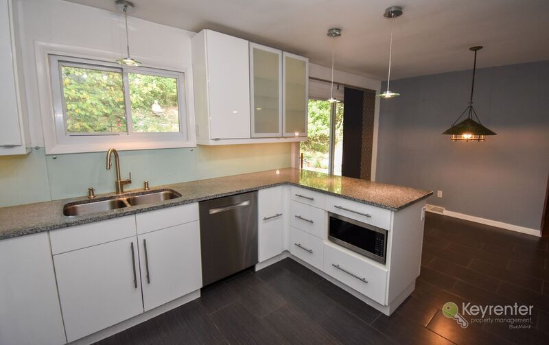 Nestled on a semi-secluded lot, this beautifully maintained 3-bedroom, 2-bath home offers both privacy and comfort. The inviting living space features hardwood floors throughout and a cozy wood-burning fireplace, perfect for relaxing evenings. The spacious primary bedroom features an ensuite bathroom for added privacy, while the two additional bedrooms share a well-appointed second bathroom. The modern kitchen is equipped with stainless steel appliances, updated fixtures, and ample counter space. A sliding glass door leads you to a tranquil private deck and garden, ideal for outdoor relaxation. The partially finished basement adds extra versatility with a bar, refrigerator, and plenty of space for a craft area, home gym, or office. Additional storage, along with an in-unit washer, dryer, and utility sink, ensures convenience and functionality. A 2-car garage provides ample parking, while the location enhances the sense of peace and privacy. Discover all that this wonderful home has to offer! Pets allowed for an additional fee. Some breed & size restrictions apply. This home is enrolled in an HVAC filter delivery program for $10/mo Tenant responsible for Electric, Heating Oil, Propane (cooking), Trash, Lawn/Snow, and Internet/cable