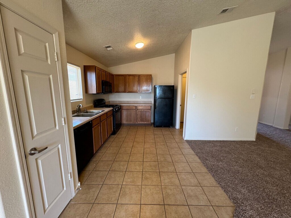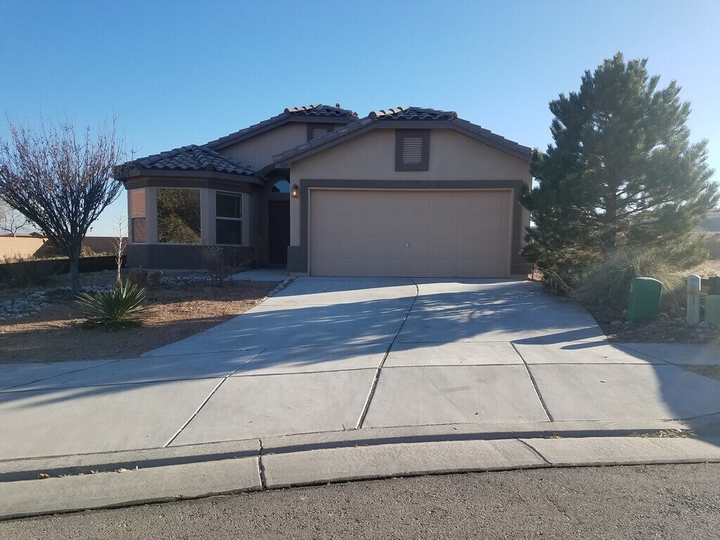 Welcome to this great 3 bed, 2 bath home in Huning Ranch, located in the charming town of Los Lunas, NM. This lovely home features a garage for convenient parking, as well as a refrigerator, disposal, dishwasher, and built-in microwave for all your kitchen needs. Enjoy the comfort of refrigerated air throughout the house, perfect for those hot summer days. Step outside to the patio and take in the beautiful views of the surrounding area. The house boasts all new flooring, giving it a fresh and modern feel. The fenced backyard provides privacy and a safe space for outdoor activities. Don't miss out on this wonderful home in a desirable location!