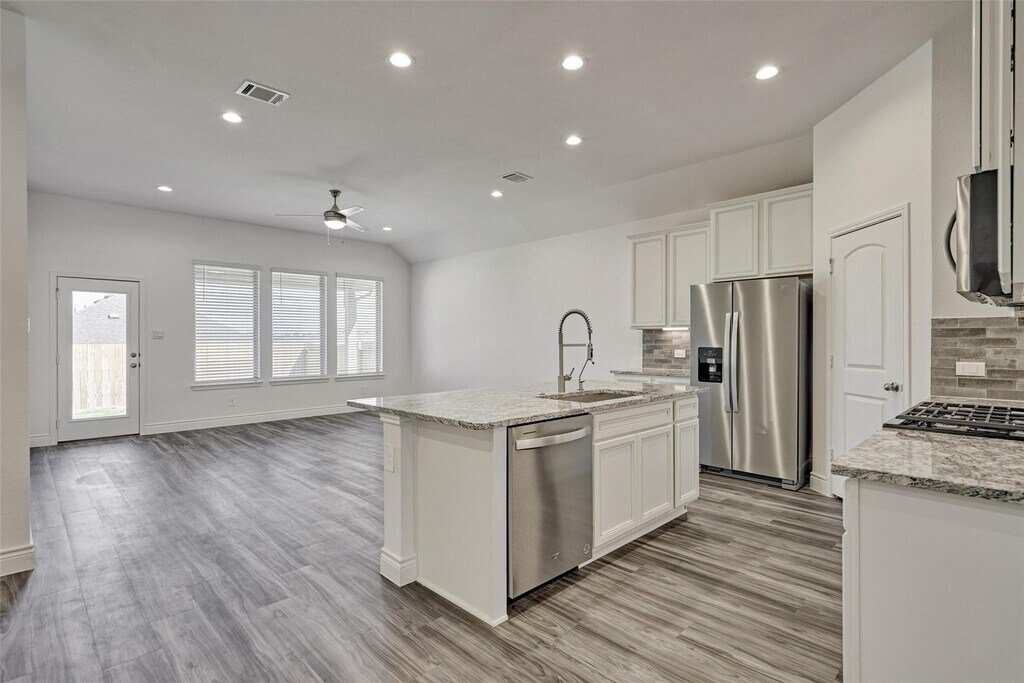 Move-In Ready 4 bedroom,3 full bath home with a contemporary aesthetic. Thoughtfully designed for families seeking both comfort and functionality. The open-plan living area welcomes you with high ceilings,abundant natural light,and a seamless flow into the updated kitchen,complete with stainless steel appliances,granite counters,central island,pantry and generous cabinetry. A split floor plan features the primary suite with a walk-in closet and en-suite bath boasting dual vanities,garden tub and separate shower. Three additional bedrooms and two baths are positioned for convenient access. Bonus covered outdoor patio and great sized backyard. Energy efficient home with Tankless H2O,Upgraded Insulation,Low-E Windows & More. Community amenities include playground,splashpad,and ball courts. Close proximity to the National Forest & Lake Conroe. Check Out the Floor Plan and Schedule a Viewing! MLS# 32586368
