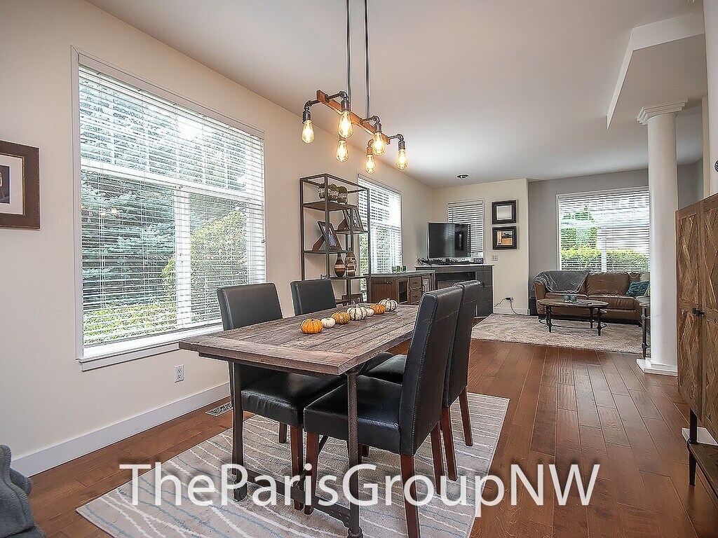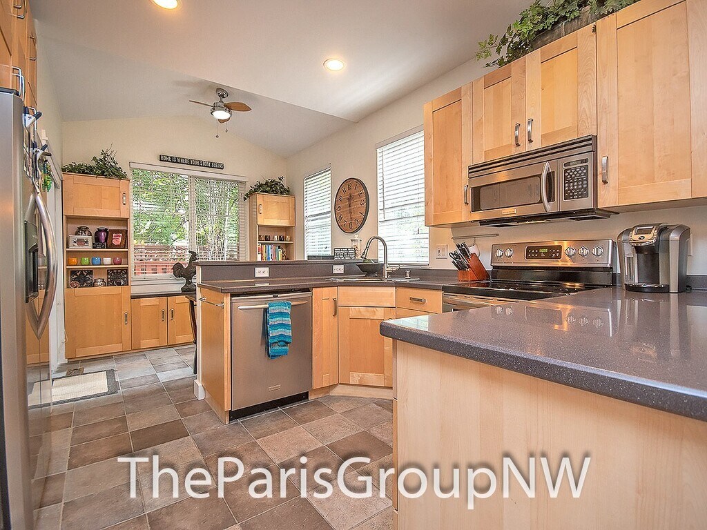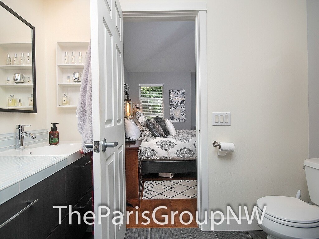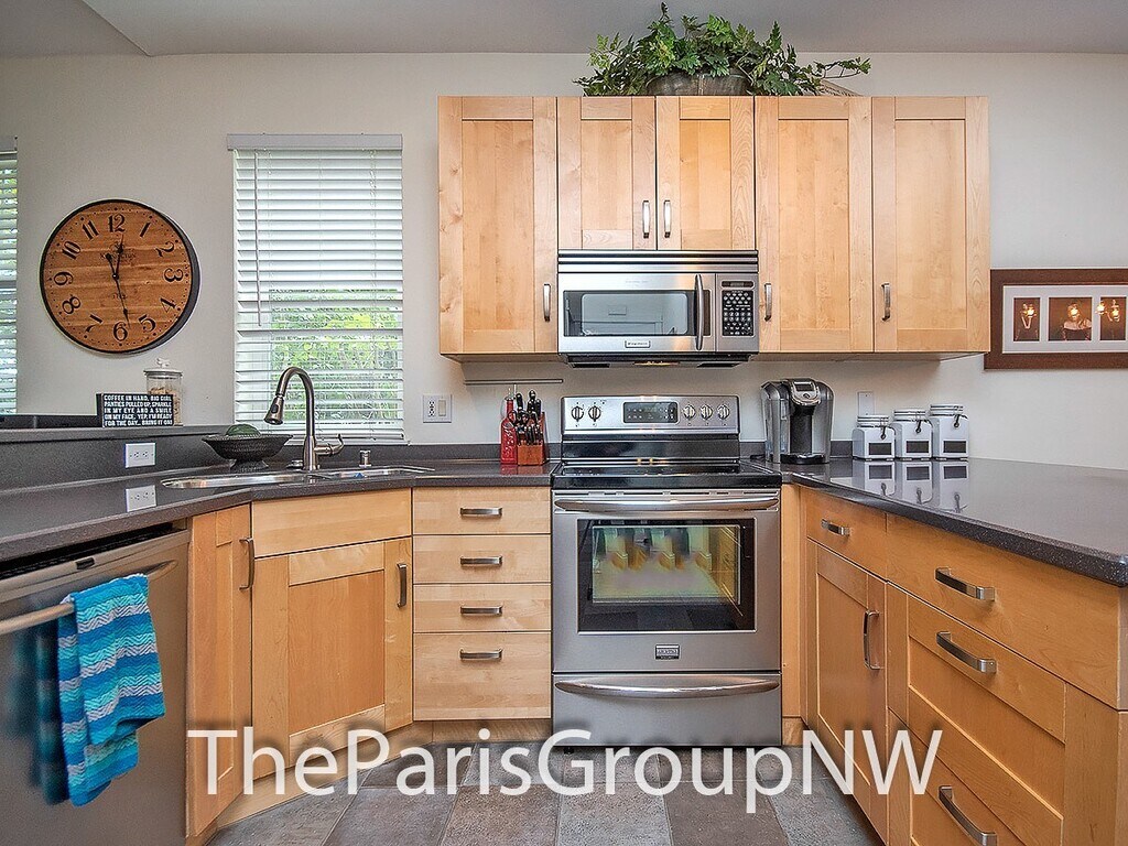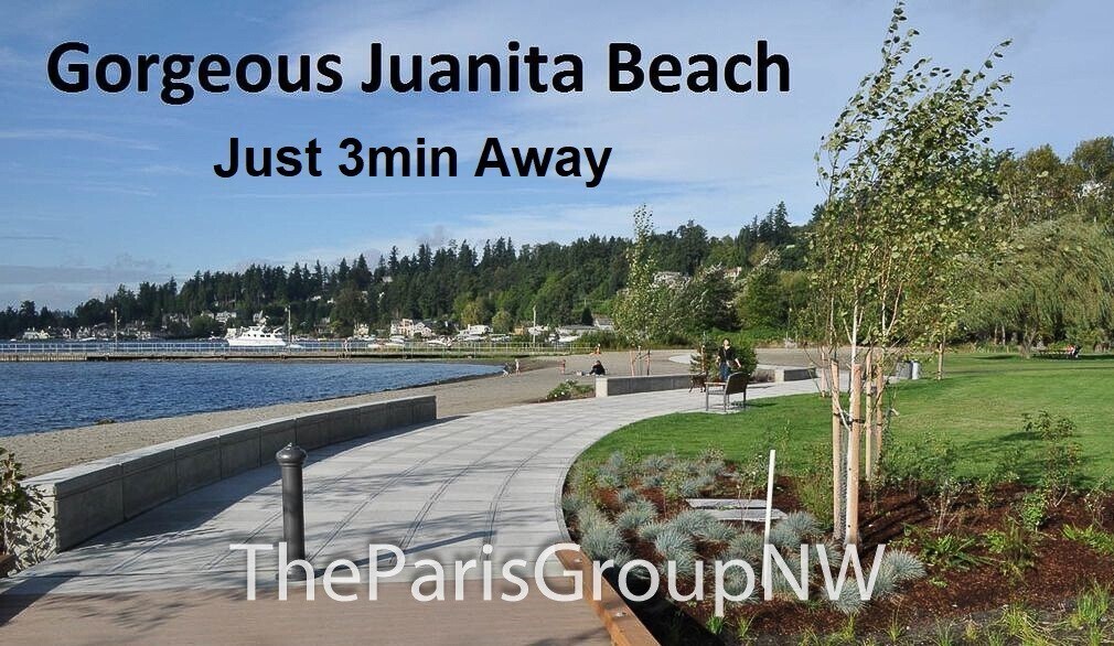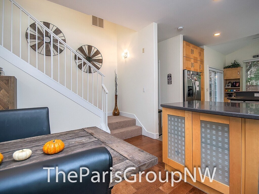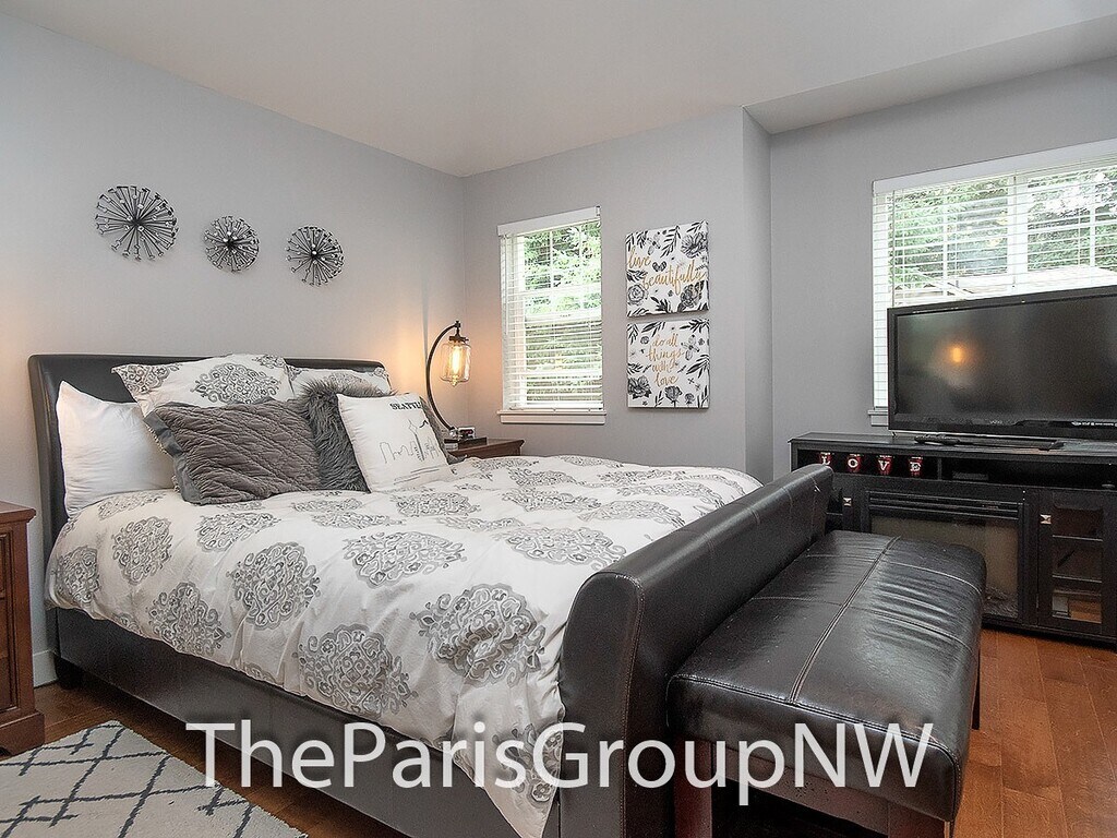 Beautiful throughout featuring a lovely deck courtyard, scenic views out your windows & 2 car garage, this end unit lives large offering big open floor plan, high ceilings, lots of windows, stylish fixtures & detailing, rich textured wood floors, vaulted ceilings & ensuite baths in both bedrooms, dine-in kitchen with tons of built-ins & stainless appliances, gas fireplace, 2in faux wood blinds & so much more. Bonus - W/S/G & front yard maintenance included! Great location walking distance to Juanita Elem, served by top Lk WA schools, surrounded by amenities, parks, trails & beaches, with quick freeway access for easy commute to work & beyond. Spacious great room on main floor provides flexible furniture layout options to fit your lifestyle, cozy living room with gas fireplace & space for wide TV above, large picture windows, gourmet kitchen with abundant counter & cabinet space, stainless appliances, adorable dining nook out to the back deck & convenient powder room. Perfect for entertaining or just relaxing after a long week. Upstairs you’ll find the same hardwoods, a luxurious king size primary suite with vaulted ceiling, double wide closet space & spa like bath featuring oversized glass shower & dual sink vanity, a generous sized 2nd bedroom with its own ensuite bath & vaulted ceiling, and handy laundry closet. Additional features include alarm system (monitoring not included), energy efficient & quiet double pane windows, ceiling fans, tile floors, all in elegant, well-kept small 17 unit community. LET’S TOUR!! Contact The Paris Group NW at or for appointment to tour. TERMS: 1st months rent of $2,900 and security deposit of $2,700 + $200 carpet cleaning service charge due at signing. Sorry, no smoking or pets. FREE Water/Sewer/Garbage & common area yard care. Detailed qualification & application available online at with $50 per adult screening fee. The Paris Group NW is an Equal Housing Opportunity provider. We do not accept reusable 3rd party tenant screening reports.